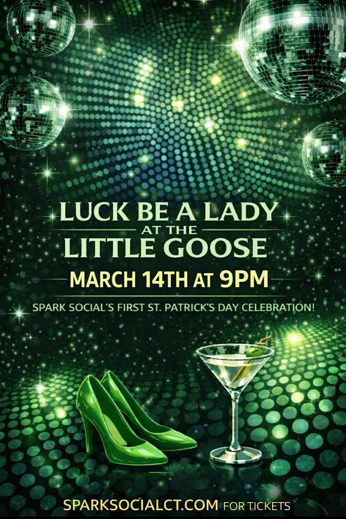 by admin23Feb Spark Social – Luck be a Lady at Little Goose Cafe – Fairfield, CT Spark Social – Luck be a Lady at Little Goose Cafe – Fairfield, CT 1 1 people viewed this event. Get Lucky in Love w/ Spark Social. No matter if your Single, Taken or somewhere in between, when the music starts we dance!! Tickets-RSVP Link Date And Time Saturday, March 14th, 2026 09:00 PM (PST) Venue Little Goose Cafe Location 397 Commerce Drive, Fairfield, CT 6825 Event Types MusicParty or Social Gathering Event Category Connecticut Share With Friends Facebook Twitter Linkedin Xing Pinterest Share This Post: