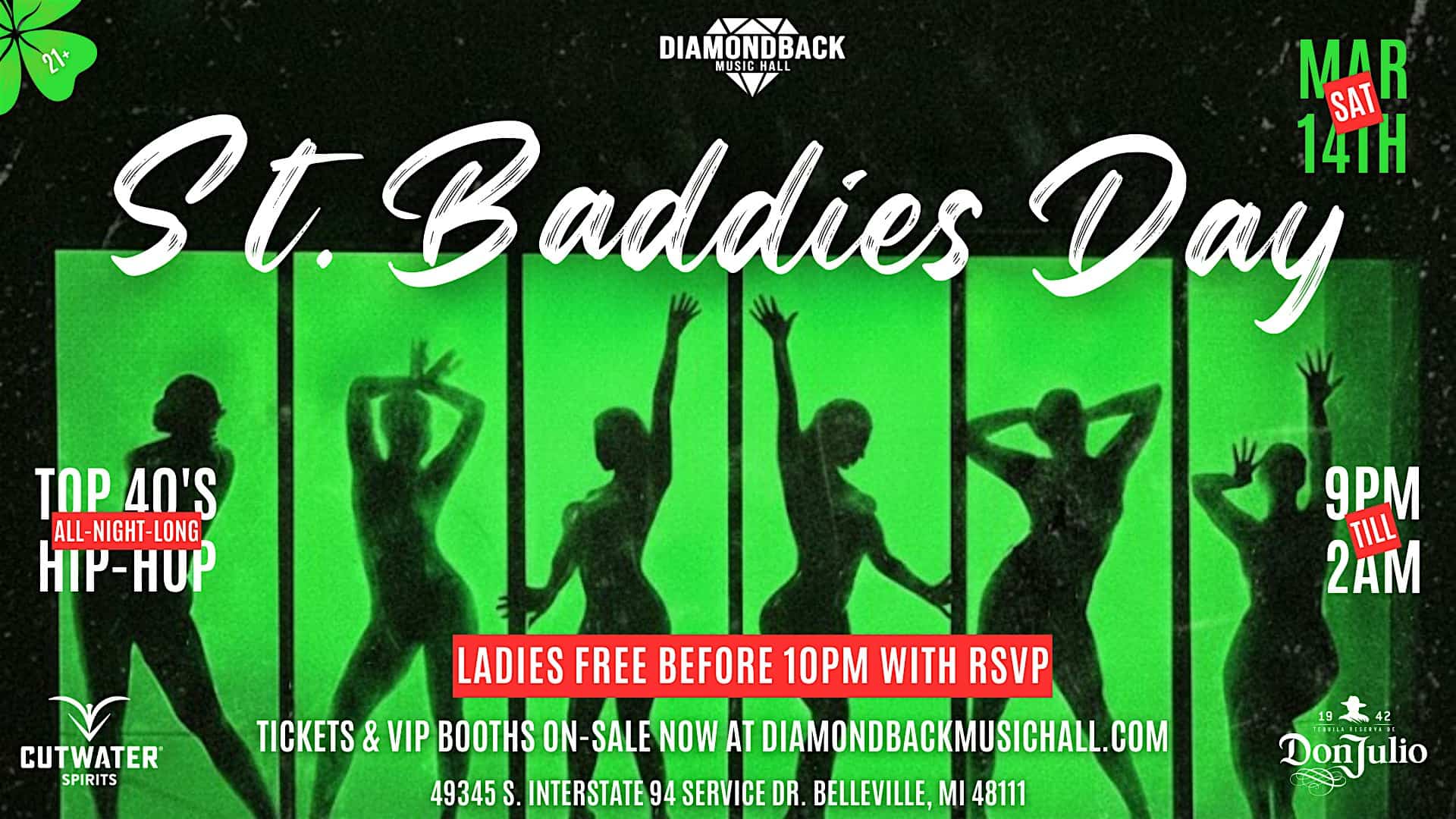 by admin23Feb St. Baddies Day! at Diamondback Music Hall – Van Buren Charter Township, MI St. Baddies Day! at Diamondback Music Hall – Van Buren Charter Township, MI 1 1 people viewed this event. If you aren’t wearing green and getting shamrocked with us on Saturday, March 14th, are you even doing St. Paddy’s right? Tickets-RSVP Link Date And Time Saturday, March 14th, 2026 @ 09:00 PM Location 49345 Interstate 94 S Service Drive, Van Buren Charter Township, MI 48111 Event Types Party or Social GatheringSeasonal & Holiday Event Category Michigan Share With Friends Facebook Twitter Linkedin Xing Pinterest Share This Post: