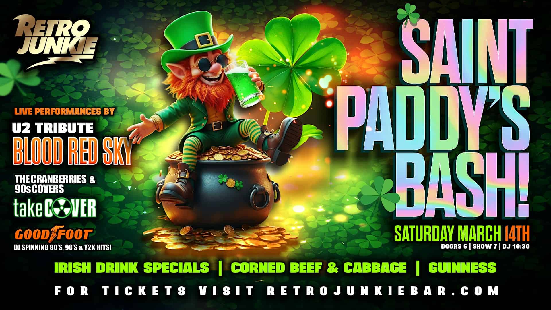 by admin23Feb St Paddy’s Bash w/ U2 and The Cranberries Tributes + DJ & More! at Retro Junkie – Walnut Creek, CA St Paddy’s Bash w/ U2 and The Cranberries Tributes + DJ & More! at Retro Junkie – Walnut Creek, CA 1 1 people viewed this event. St Paddy’s Bash w/ U2 and The Cranberries Tributes + DJ & More! Tickets-RSVP Link Date And Time Saturday, March 14th, 2026 06:00 PM (PST) Venue Retro Junkie Location 2112 North Main Street, Walnut Creek, CA 94596 Event Types Concert or PerformanceMusic Event Category CaliforniaOakland Share With Friends Facebook Twitter Linkedin Xing Pinterest Share This Post: