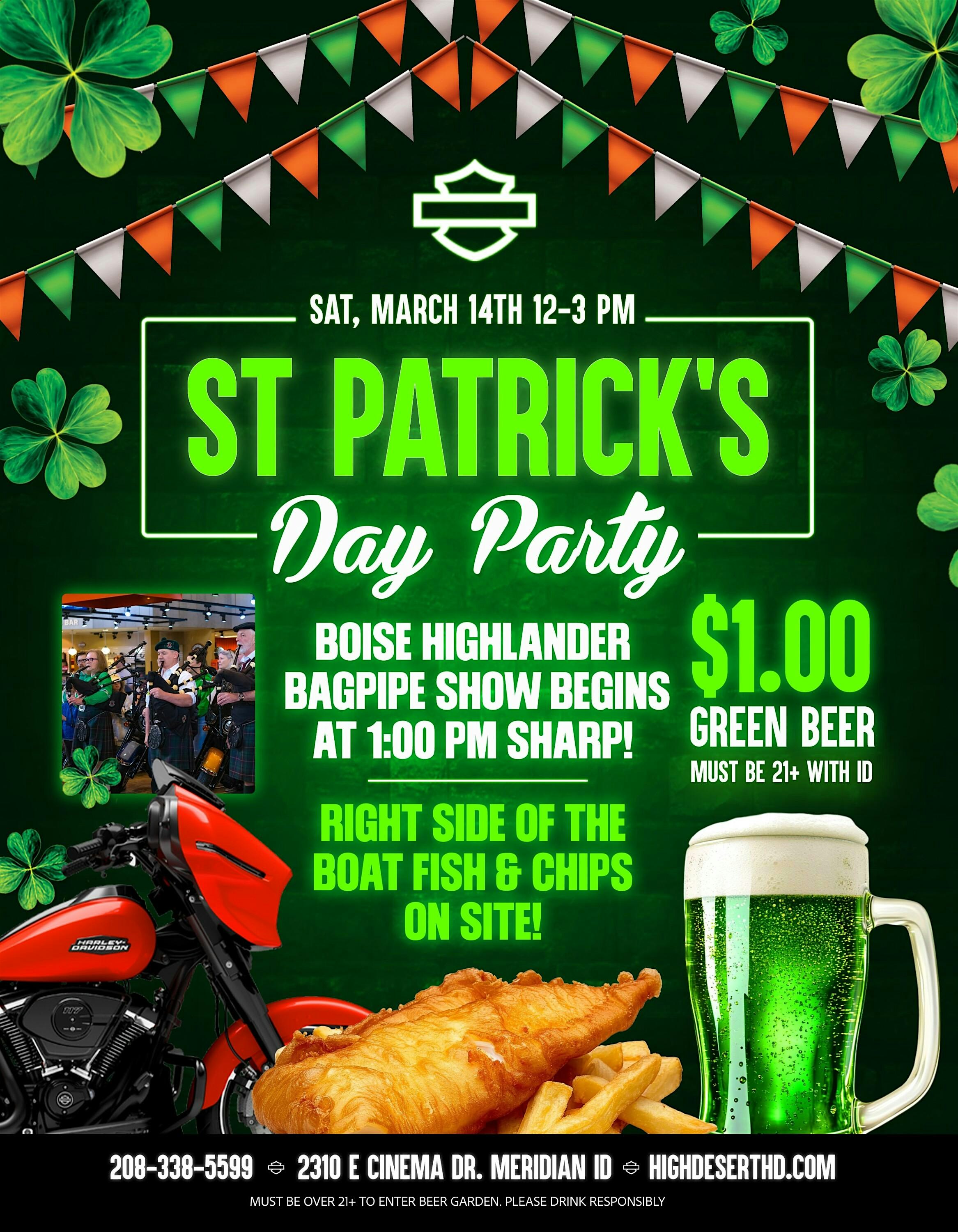 by admin05Mar St. Patrick’s Day Party at High Desert Harley Davidson – Meridian, ID St. Patrick’s Day Party at High Desert Harley Davidson – Meridian, ID 1 1 people viewed this event. Celebrate St. Patrick’s Day with us! Tickets-RSVP Link Date And Time Saturday, March 14th, 2026 12:00 PM (PST) Venue High Desert Harley Davidson Location 2310 East Cinema Drive, Meridian, ID 83642 Event Types Party or Social GatheringSeasonal & Holiday Event Category BoiseIdaho Share With Friends Facebook Twitter Linkedin Xing Pinterest Share This Post: