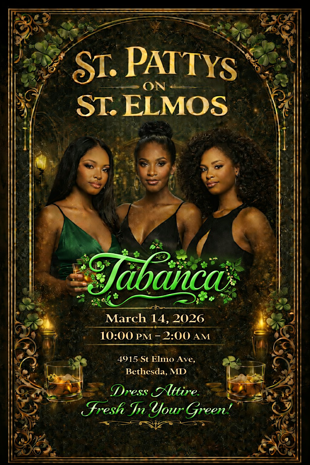 by admin27Feb St. Pattys On St. Elmos: Tabanca at ON St. Elmo – Bethesda, MD St. Pattys On St. Elmos: Tabanca at ON St. Elmo – Bethesda, MD 3 3 people viewed this event. Join us for a night where R&B, Afrobeats and island vibes blend into one unforgettable experience. This isn’t just a party….it’s Tabanca! Tickets-RSVP Link Date And Time Saturday, March 14th, 2026 @ 10:00 PM Location 4915 Saint Elmo Avenue, Bethesda, MD 20814 Event Types Food & DrinkParty or Social Gathering Event Category MarylandNational Harbor Share With Friends Facebook Twitter Linkedin Xing Pinterest Share This Post: