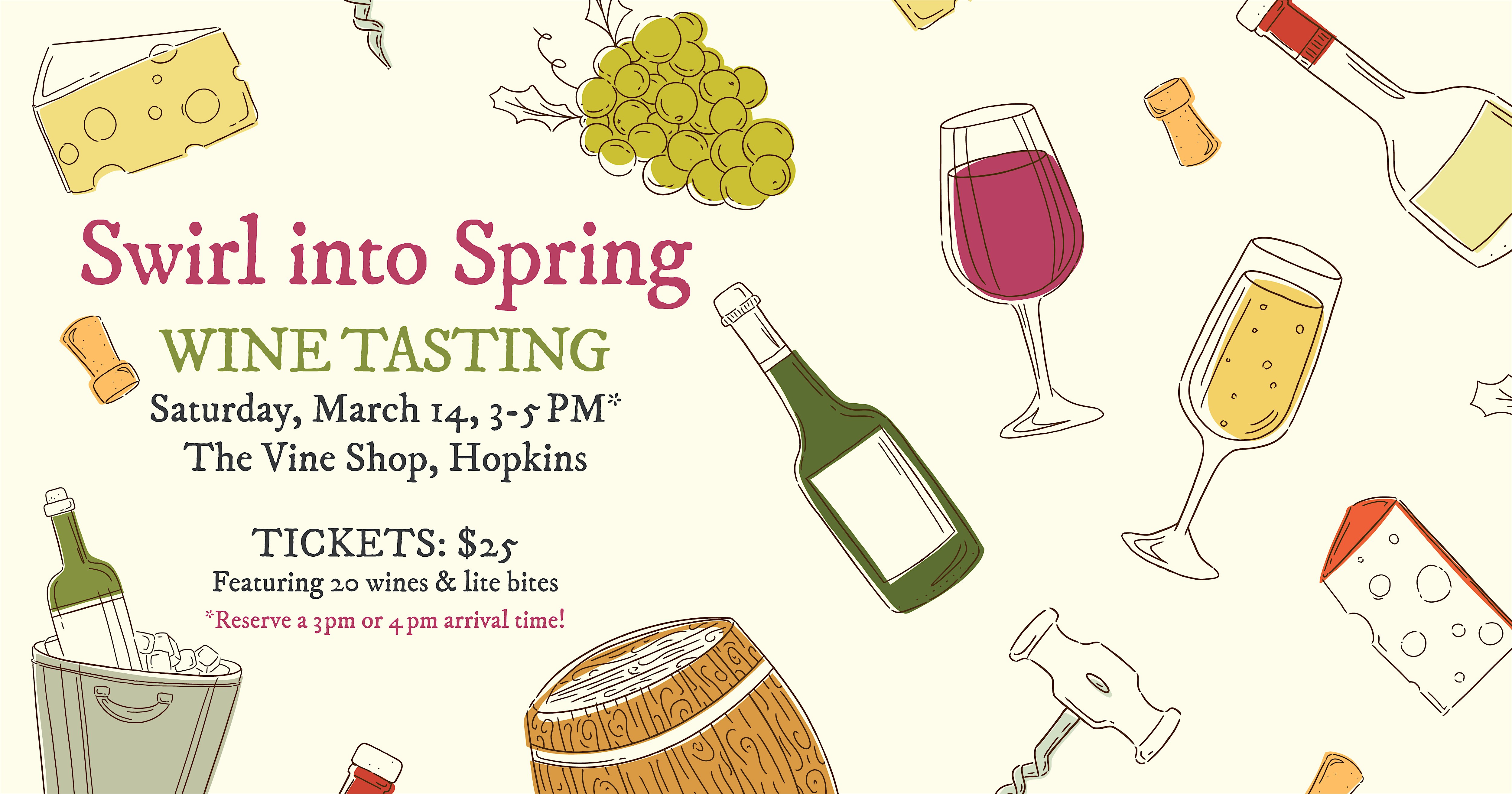 by admin24Feb Swirl into Spring Tasting Event at The Vine Shop – Hopkins, MN Swirl into Spring Tasting Event at The Vine Shop – Hopkins, MN 3 3 people viewed this event. Celebrate spring by sampling twenty wines and nibble on light bites. Hosted in partnership with The Vine Shop in Hopkins, MN. Tickets-RSVP Link Date And Time Saturday, March 14th, 2026 03:00 PM (PST) Venue The Vine Shop Location 762 Mainstreet, Hopkins, MN 55343 Event Types Food & Drink Event Category MinneapolisMinnesota Share With Friends Facebook Twitter Linkedin Xing Pinterest Share This Post: