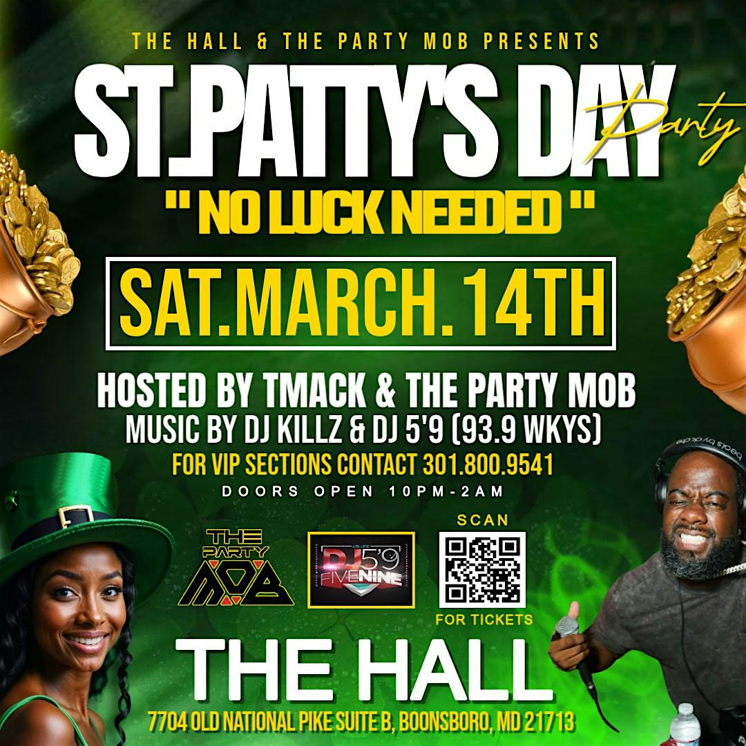 by admin27Feb The Hall Presents – St. Patty’s Day No Luck Needed at The Hall – Boonsboro, MD The Hall Presents – St. Patty’s Day No Luck Needed at The Hall – Boonsboro, MD 1 1 people viewed this event. The ultimate St. Patty’s party at The Hall 21+ | 8PM–2AM Tickets-RSVP Link Date And Time Saturday, March 14th, 2026 08:00 PM (PST) Venue The Hall Location 7704 Old National Pike, Boonsboro, MD 21713 Event Types Concert or PerformanceMusic Event Category Maryland Share With Friends Facebook Twitter Linkedin Xing Pinterest Share This Post: