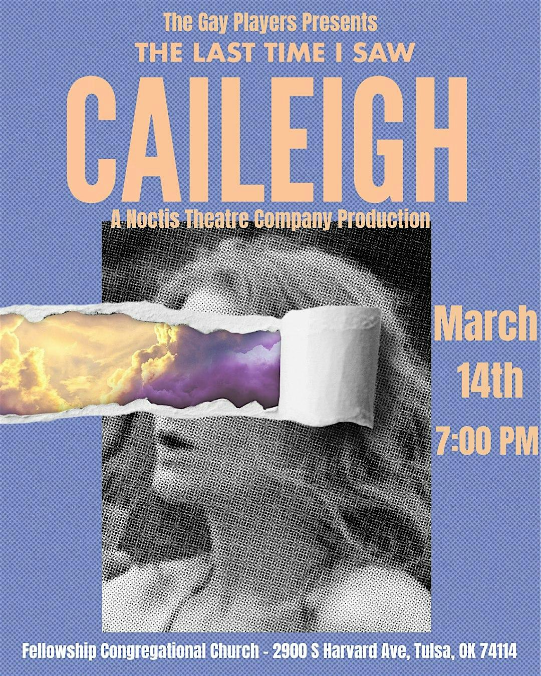 by admin05Mar The Last Time I Saw Caileigh at Fellowship Congregational Church UCC – Tulsa, OK The Last Time I Saw Caileigh at Fellowship Congregational Church UCC – Tulsa, OK 2 2 people viewed this event. The Gay Players (Tulsa) and Noctis Theatre Company (NYC) are proud to present: Tickets-RSVP Link Date And Time Saturday, March 14th, 2026 07:00 PM (PST) Venue Fellowship Congregational Church UCC Location 2900 South Harvard Avenue, Tulsa, OK 74114 Event Types Concert or PerformancePerforming & Visual Arts Event Category OklahomaTulsa Share With Friends Facebook Twitter Linkedin Xing Pinterest Share This Post: