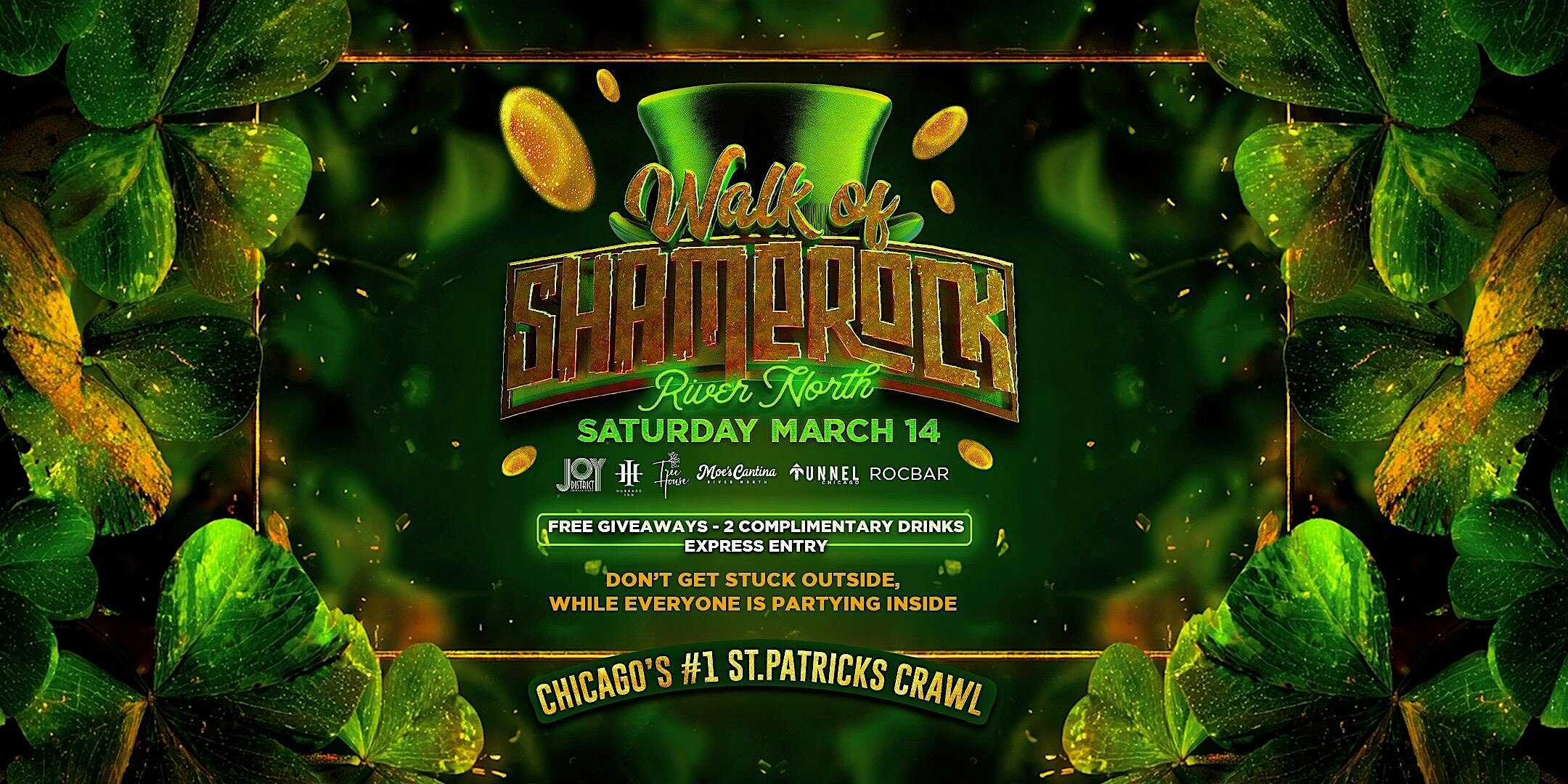 by admin23Feb The Original St Patricks Day Bar Crawl Walk of Shamerock at Joy District – Chicago, IL The Original St Patricks Day Bar Crawl Walk of Shamerock at Joy District – Chicago, IL 1 1 people viewed this event. ONLY RIVERNORTH bar crawl with SECURED times for entry at the BIGGEST venues in Chicago! We are also giving you some free drinks on us. Tickets-RSVP Link Date And Time Saturday, March 14th, 2026 12:00 PM (PST) Venue Joy District Location 112 West Hubbard Street, Chicago, IL 60654 Event Types Food & DrinkParty or Social Gathering Event Category ChicagoIllinois Share With Friends Facebook Twitter Linkedin Xing Pinterest Share This Post: