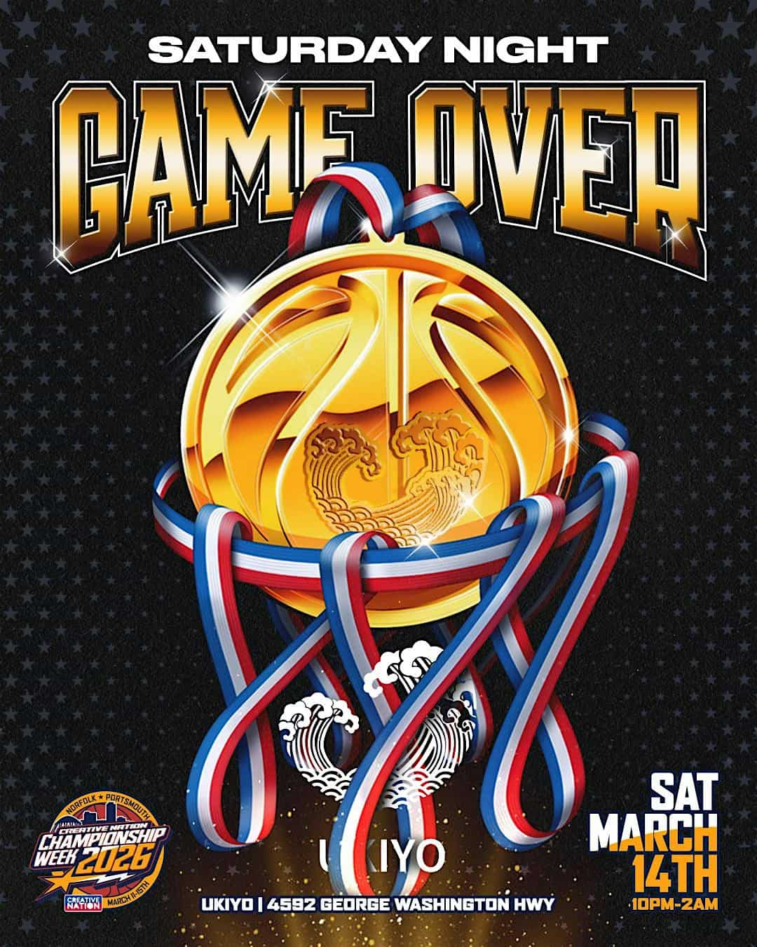 by admin23Feb Ukiyo Saturday Night 3/14/26 “Game Over” at Ukiyo – Portsmouth, VA Ukiyo Saturday Night 3/14/26 “Game Over” at Ukiyo – Portsmouth, VA 2 2 people viewed this event. Join us each and every Saturday for the hottest venue in Virginia ! Tickets-RSVP Link Date And Time Saturday, March 14th, 2026 10:00 PM (PST) Venue Ukiyo Location 4592 George Washington Highway, Portsmouth, VA 23702 Event Types Food & DrinkParty or Social Gathering Event Category NorfolkVirginia Share With Friends Facebook Twitter Linkedin Xing Pinterest Share This Post: