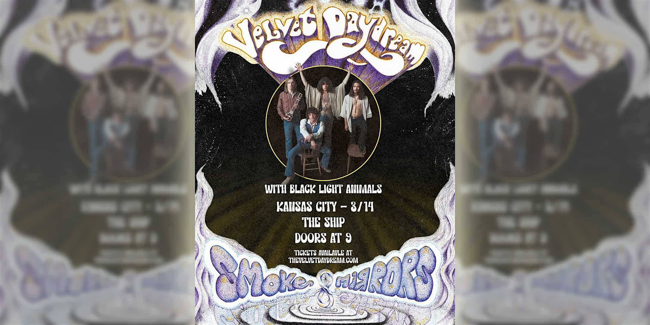 by admin23Feb VELVET DAYDREAM (denver) with Black Light Animals at The Ship – Kansas City, MO VELVET DAYDREAM (denver) with Black Light Animals at The Ship – Kansas City, MO 1 1 people viewed this event. Denver supergroup VELVET DAYDREAM returns to rock The Ship with Black Light Animals Tickets-RSVP Link Date And Time Saturday, March 14th, 2026 09:00 PM (PST) Venue The Ship Location 1221 Union Avenue, Kansas City, MO 64101 Event Types Concert or PerformanceMusic Event Category Kansas CityMissouri Share With Friends Facebook Twitter Linkedin Xing Pinterest Share This Post: