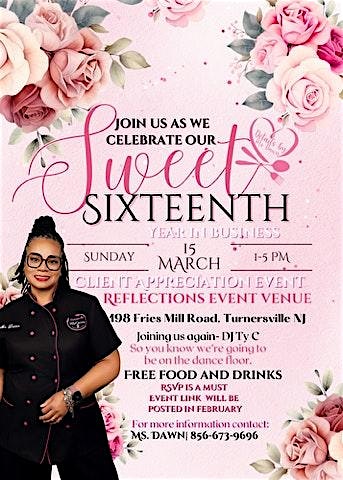 2026 Client Appreciation Event – Celebrating our “Sweet 16th” Year !! at Reflections – Event Center, Turnersville, NJ, USA – Washington Township, NJ