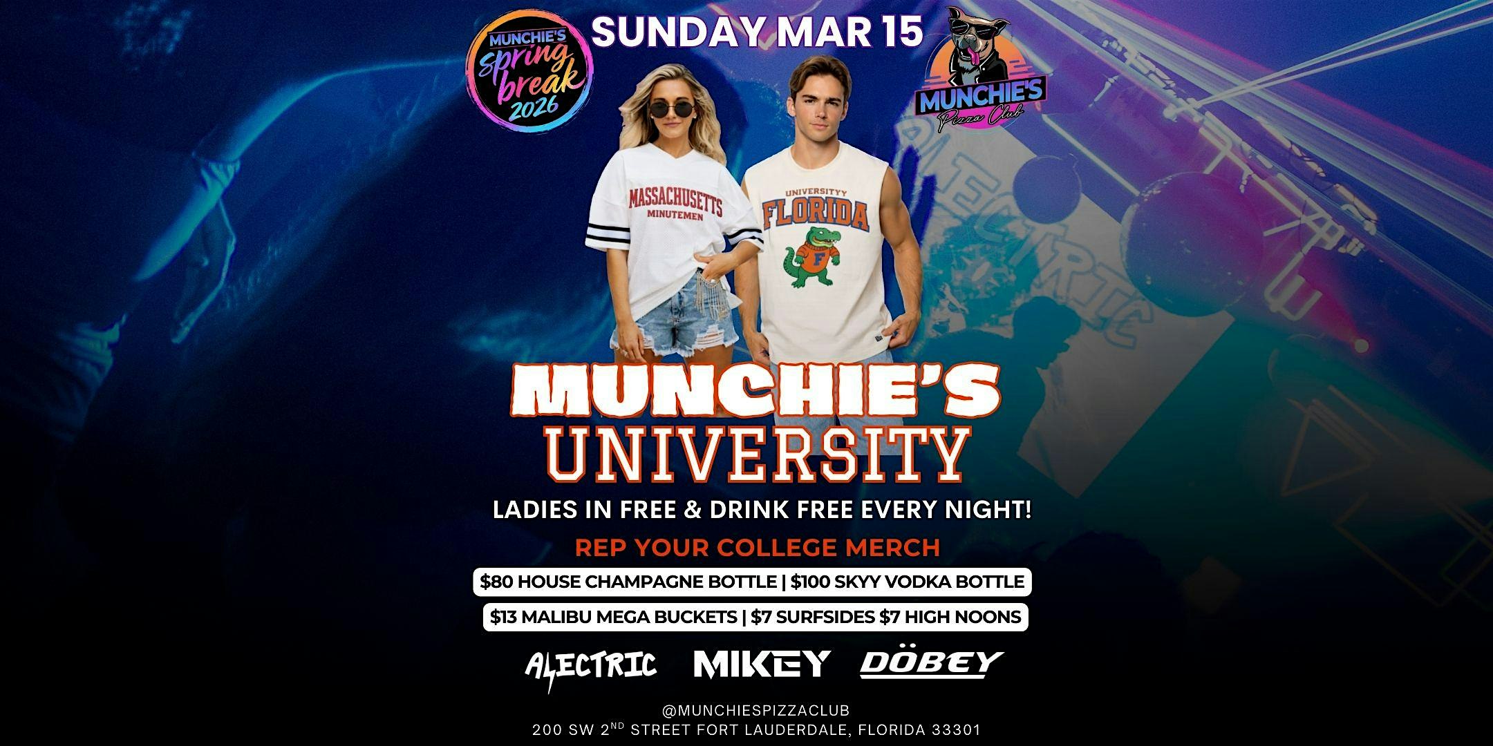 by admin24Feb 3/15- MUNCHIE’S UNIVERSITY – SPRING BREAK 2026 @ MUNCHIE’S at Munchie’s Pizza Club – Fort Lauderdale, FL 3/15- MUNCHIE’S UNIVERSITY – SPRING BREAK 2026 @ MUNCHIE’S at Munchie’s Pizza Club – Fort Lauderdale, FL 2 2 people viewed this event. The ultimate Spring Break destination in downtown Fort Lauderdale! Tickets-RSVP Link Date And Time Sunday, March 15th, 2026 09:00 PM (PST) Venue Munchie's Pizza Club Location 200 Southwest 2nd Street, Fort Lauderdale, FL 33301 Event Types MusicParty or Social Gathering Event Category FloridaFt Lauderdale Share With Friends Facebook Twitter Linkedin Xing Pinterest Share This Post: