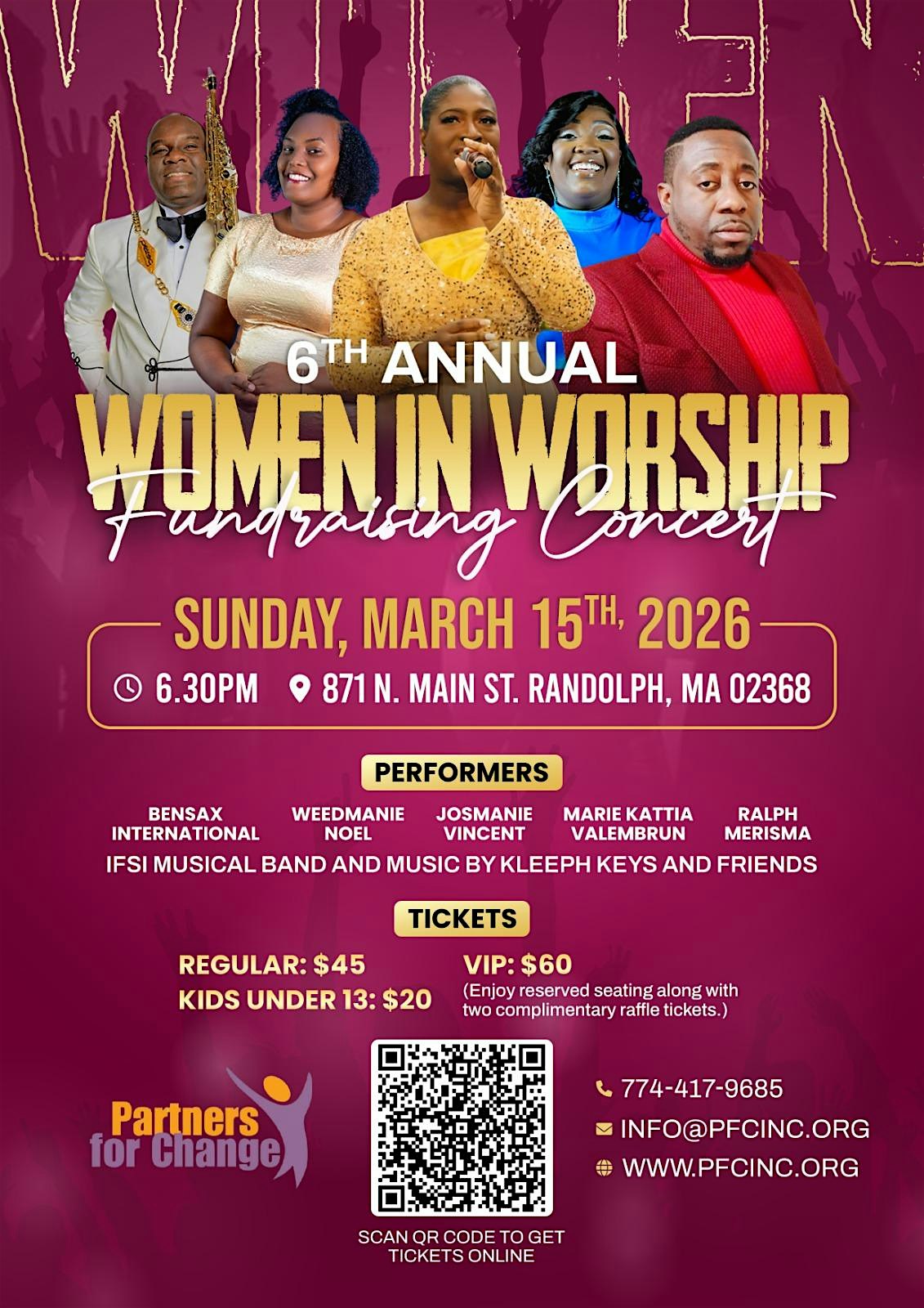 by admin05Mar 6th ANNUAL WOMEN IN WORSHIP FUNDRAISING CONCERT at 871 N Main St – Randolph, MA 6th ANNUAL WOMEN IN WORSHIP FUNDRAISING CONCERT at 871 N Main St – Randolph, MA 1 1 people viewed this event. FUNDRAISING EVENT Tickets-RSVP Link Date And Time Sunday, March 15th, 2026 06:00 PM (PST) Venue 871 N Main St Location 871 North Main Street, Randolph, MA 2368 Event Types Charity & CausesConcert or Performance Event Category Massachusetts Share With Friends Facebook Twitter Linkedin Xing Pinterest Share This Post: