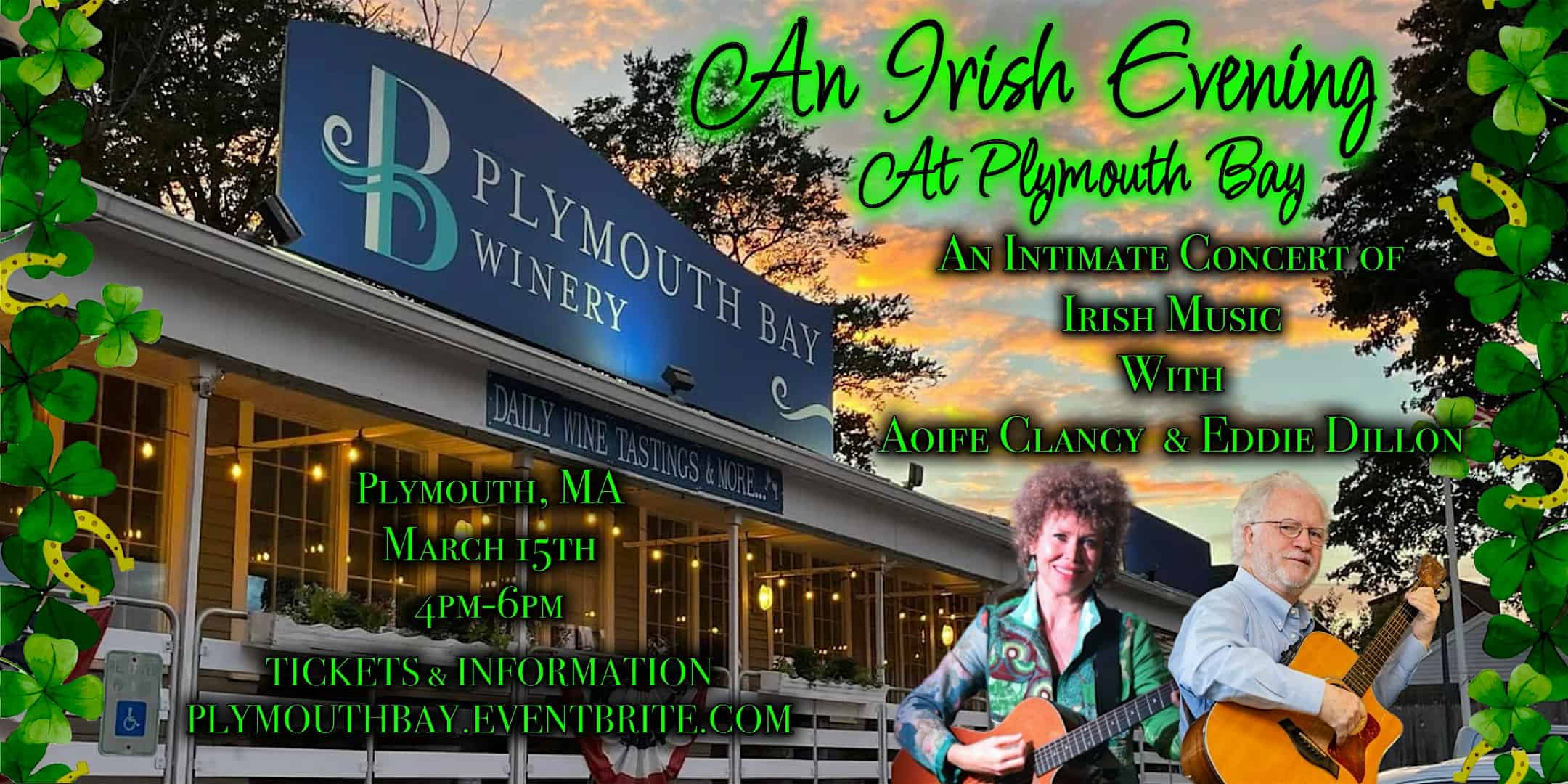 by admin14Feb An Irish Evening with Aoife Clancy and Eddie Dillon at Plymouth Bay Winery – Plymouth, MA An Irish Evening with Aoife Clancy and Eddie Dillon at Plymouth Bay Winery – Plymouth, MA 2 2 people viewed this event. Join us for an intimate night of Irish music with Aoife Clancy and Eddie Dillon on March 15th at 4:00 PM! Tickets-RSVP Link Date And Time Sunday, March 15th, 2026 08:00 PM (PST) Venue Plymouth Bay Winery Location 114 Water Street, Plymouth, MA 2360 Event Types Concert or PerformancePerforming & Visual Arts Event Category Massachusetts Share With Friends Facebook Twitter Linkedin Xing Pinterest Share This Post: