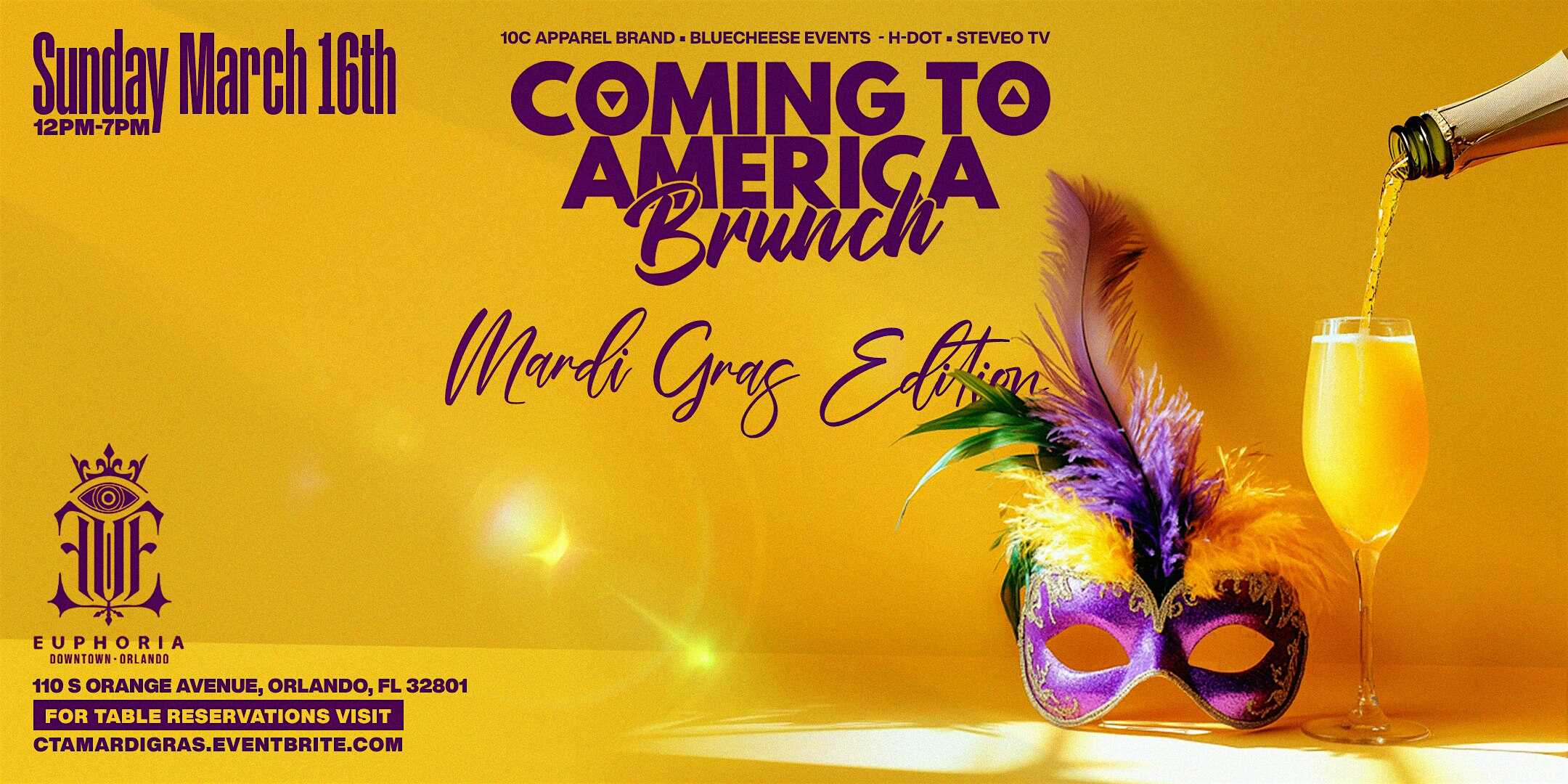 by admin23Feb COMING TO AMERICA BRUNCH: “MARDI GRAS” EDITION at Euphoria Downtown Orlando – Orlando, FL COMING TO AMERICA BRUNCH: “MARDI GRAS” EDITION at Euphoria Downtown Orlando – Orlando, FL 1 1 people viewed this event. Sunday March 15th, Join Us At Euphoria Downtown For The “Mardi Gras” Edition of Coming To America Brunch Tickets-RSVP Link Date And Time Sunday, March 15th, 2026 12:00 PM (PST) Venue Euphoria Downtown Orlando Location 110 South Orange Avenue, Orlando, FL 32801 Event Types Food & DrinkParty or Social Gathering Event Category FloridaOrlando Share With Friends Facebook Twitter Linkedin Xing Pinterest Share This Post: