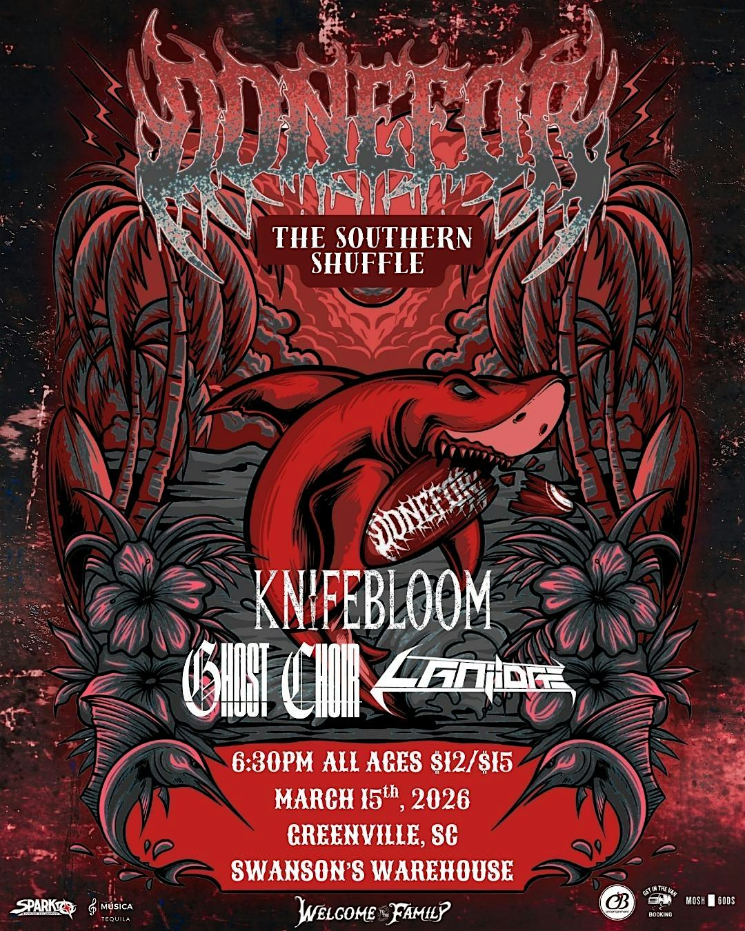 by admin13Feb DONEFOR-THE SOUTHERN SHUFFLE TOUR VIP TICKET UPGRADE-GREENVILLE at Swanson’s Warehouse – Greenville, SC DONEFOR-THE SOUTHERN SHUFFLE TOUR VIP TICKET UPGRADE-GREENVILLE at Swanson’s Warehouse – Greenville, SC 1 1 people viewed this event. Southwest Florida’s own DONEFOR stops in GREENVILLE for their nationwide fall tour for a metal experience for the ages!! THIS IS FOR VIP Tickets-RSVP Link Date And Time Sunday, March 15th, 2026 09:00 PM (PST) Venue Swanson's Warehouse Location 12 North Irvine Street, Greenville, SC 29601 Event Types Concert or PerformanceMusic Event Category South Carolina Share With Friends Facebook Twitter Linkedin Xing Pinterest Share This Post: