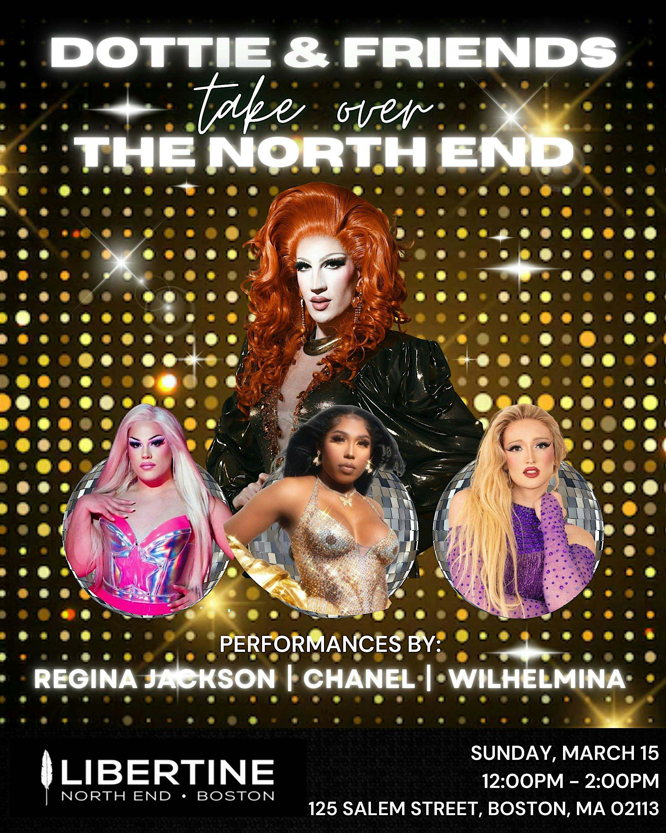 by admin13Feb Dottie & Friends Take Over The North End at Libertine North End – Boston, MA Dottie & Friends Take Over The North End at Libertine North End – Boston, MA 1 1 people viewed this event. Get ready for laughs, glam, and good eats at Drag Lunch with the fabulous Dottie Ave! Tickets-RSVP Link Date And Time Sunday, March 15th, 2026 04:00 PM (PST) Venue Libertine North End Location 125 Salem Street, Boston, MA 2113 Event Types Food & DrinkParty or Social Gathering Event Category BostonMassachusetts Share With Friends Facebook Twitter Linkedin Xing Pinterest Share This Post:
