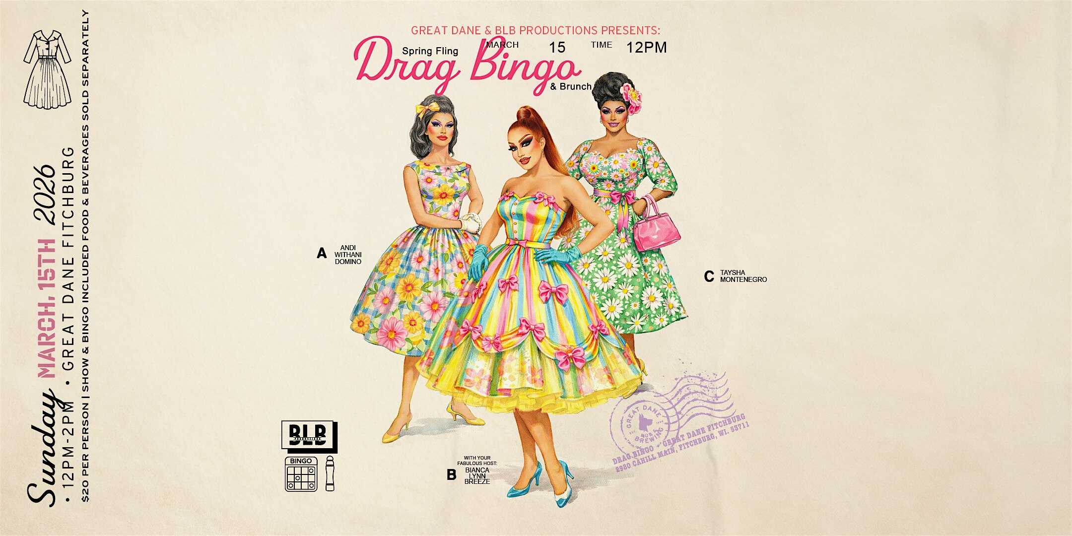 by admin24Feb Drag Bingo & Brunch: Spring Fling with Bianca Lynn Breeze at Great Dane Pub & Brewing Co. – Fitchburg – Fitchburg, WI Drag Bingo & Brunch: Spring Fling with Bianca Lynn Breeze at Great Dane Pub & Brewing Co. – Fitchburg – Fitchburg, WI 1 1 people viewed this event. Join us as we look forward to Spring – Full Bloom Drag Bingo & Brunch Tickets-RSVP Link Date And Time Sunday, March 15th, 2026 12:00 PM (PST) Venue Great Dane Pub & Brewing Co. - Fitchburg Location 2980 Cahill Main, Fitchburg, WI 53711 Event Types Concert or PerformanceFood & Drink Event Category Wisconsin Share With Friends Facebook Twitter Linkedin Xing Pinterest Share This Post: