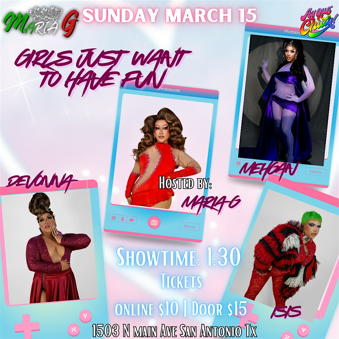 Drag Brunch: Girls Brunch at Ay Que Chula – San Antonio, TX Drag Brunch: Girls Brunch at Ay Que Chula – San Antonio, TX 1 1 people viewed this event. Let’s get together and brunch all day. Tickets-RSVP Link Register for event Date And Time Sunday, March 15th, 2026 @ 01:00 PM Location 1503 North Main Avenue, San Antonio, TX 78212 Event Types Concert or PerformanceMusic Event Category San AntonioTexas Share With Friends Facebook Twitter Linkedin Xing Pinterest