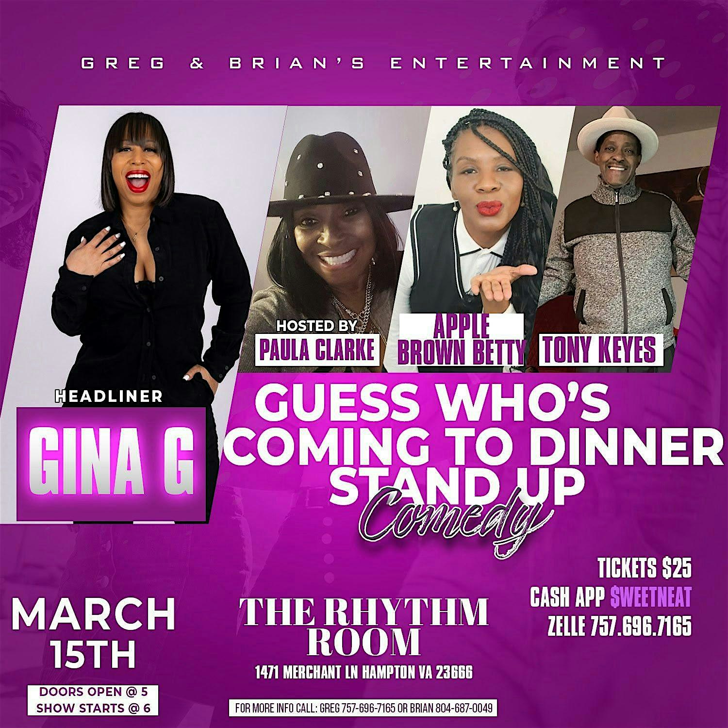by admin13Feb Guess Who’s Coming to Dinner Comedy at The Rhythm Room – Hampton, VA Guess Who’s Coming to Dinner Comedy at The Rhythm Room – Hampton, VA 2 2 people viewed this event. Get ready to LOL, enjoy live R&B, and great food at the Guess Who’s Coming to Dinner Comedy show! Tickets-RSVP Link Date And Time Sunday, March 15th, 2026 10:00 PM (PST) Venue The Rhythm Room Location 1471 Merchant Lane, Hampton, VA 23666 Event Types Party or Social GatheringPerforming & Visual Arts Event Category Virginia Share With Friends Facebook Twitter Linkedin Xing Pinterest Share This Post: