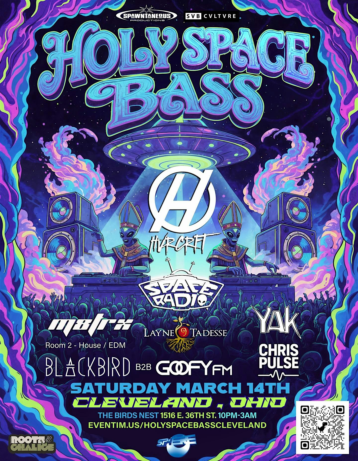 by admin13Feb Holy Space Bass Tour feat. HVRCRFT : Sat Mar 14th at The Bird’s Nest – Cleveland, OH Holy Space Bass Tour feat. HVRCRFT : Sat Mar 14th at The Bird’s Nest – Cleveland, OH 1 1 people viewed this event. The Holy Space Bass tour is inavding Cleveland on Saturday March 14th, featuring HVRCFT, Space Radio and more!! Tickets-RSVP Link Date And Time Sunday, March 15th, 2026 02:00 AM (PST) Venue The Bird's Nest Location 1516 East 36th Street, Cleveland, OH 44114 Event Types Concert or PerformanceMusic Event Category ClevelandOhio Share With Friends Facebook Twitter Linkedin Xing Pinterest Share This Post: