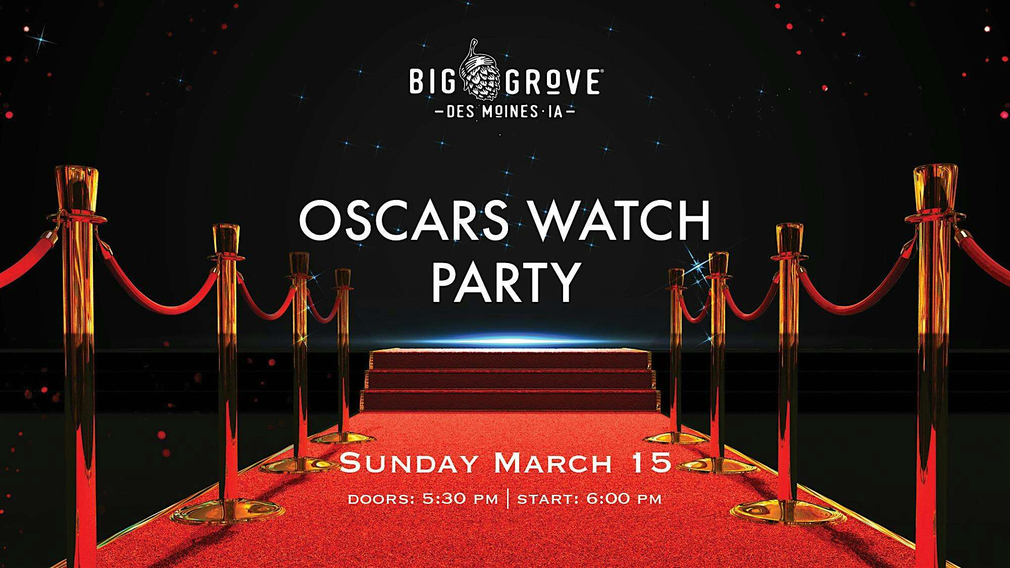 by admin23Feb Oscars Watch Party | Big Grove Des Moines at Big Grove Brewery & Taproom – Des Moines, IA Oscars Watch Party | Big Grove Des Moines at Big Grove Brewery & Taproom – Des Moines, IA 3 3 people viewed this event. Don your best red carpet looks and join us for the biggest night in Hollywood! Tickets-RSVP Link Date And Time Sunday, March 15th, 2026 @ 06:00 PM Location 555 17th Street, Des Moines, IA 50309 Event Types Film, Media & EntertainmentParty or Social Gathering Event Category Des MoinesIowa Share With Friends Facebook Twitter Linkedin Xing Pinterest Share This Post: