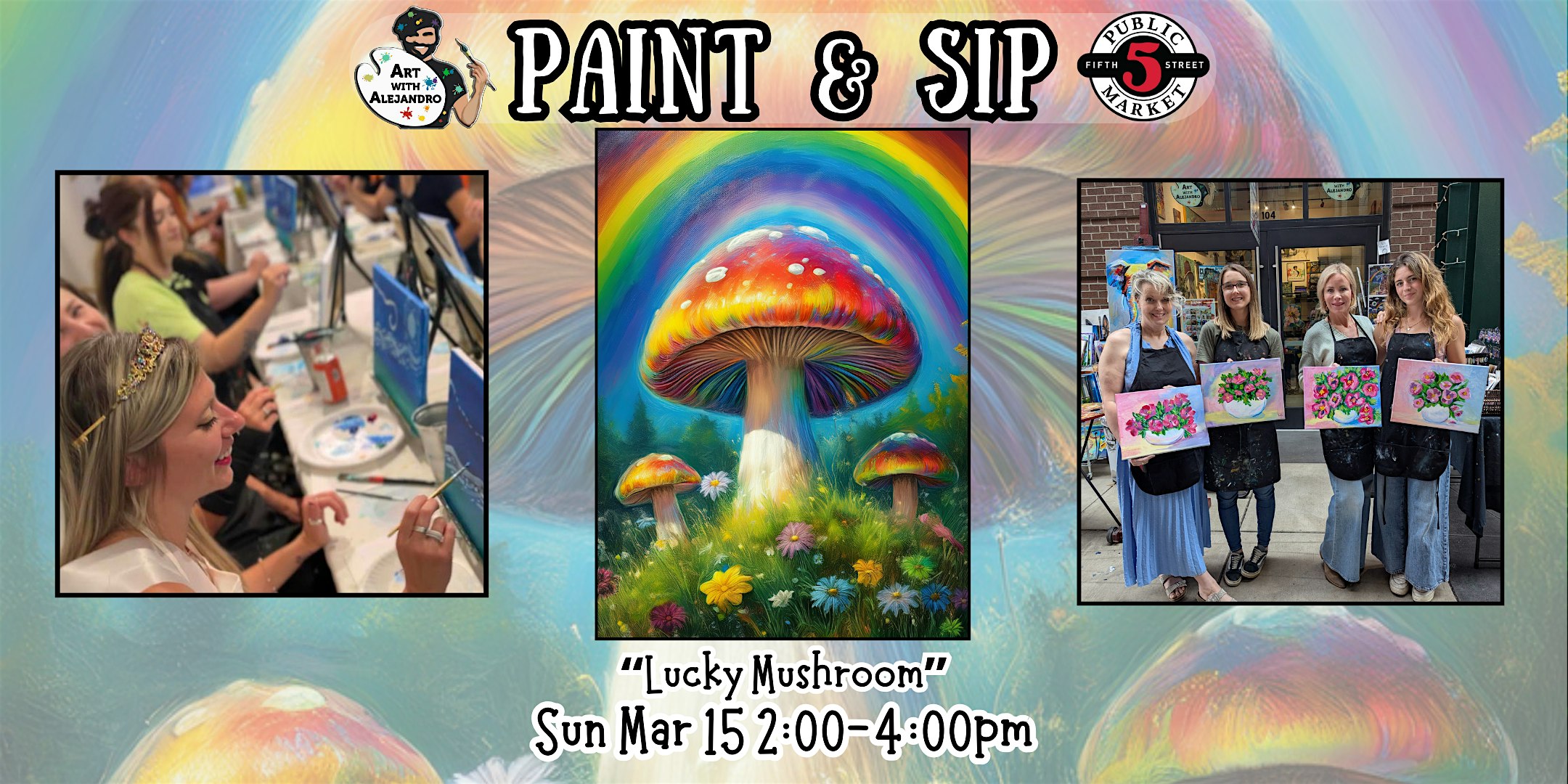 by admin13Feb Paint & Sip at 5th St Alley “Lucky Mushroom” at Art with Alejandro – Eugene, OR Paint & Sip at 5th St Alley “Lucky Mushroom” at Art with Alejandro – Eugene, OR 3 3 people viewed this event. Join us for a fun, creative afternoon. All skill levels welcome. Materials provided & BYOB Tickets-RSVP Link Date And Time Sunday, March 15th, 2026 09:00 PM (PST) Venue Art with Alejandro Location 590 Pearl St, Eugene, OR 97401 Event Types Party or Social GatheringPerforming & Visual Arts Event Category EugeneOregon Share With Friends Facebook Twitter Linkedin Xing Pinterest Share This Post: