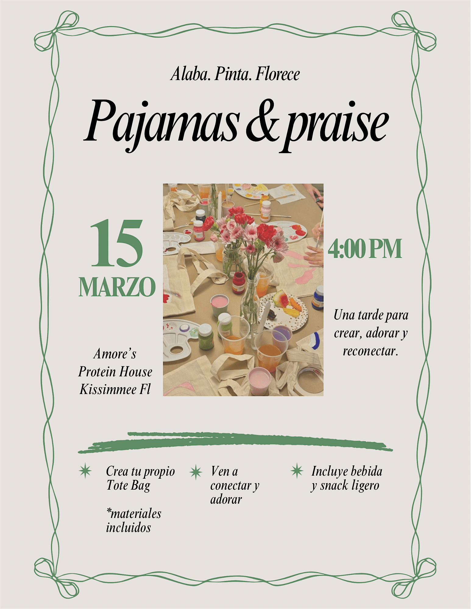 by admin27Feb Pajamas & Praise at Amore Protein House LLC – Kissimmee, FL Pajamas & Praise at Amore Protein House LLC – Kissimmee, FL 1 1 people viewed this event. Girls night… pero con propósito. ✨ Pajamas and Praise está aquí. Tote bags, adoración y picadera ligera. Tickets-RSVP Link Date And Time Sunday, March 15th, 2026 @ 04:00 PM Location 3057 Michigan Avenue, Kissimmee, FL 34744 Event Types Party or Social Gathering Event Category FloridaOrlando Share With Friends Facebook Twitter Linkedin Xing Pinterest Share This Post: