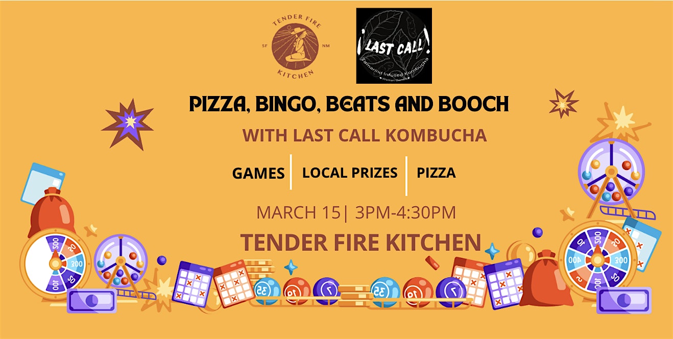 by admin05Mar Pizza, Bingo, Beats, and Booch at 1025 Midtown Calle Central – Santa Fe, NM Pizza, Bingo, Beats, and Booch at 1025 Midtown Calle Central – Santa Fe, NM 3 3 people viewed this event. Sunday, March15 | 3–4:30 PM | Tender Fire Kitchen Live DJ • Pizza • Unlimited Kombucha Prizes Every Round • Community Vibes Tickets-RSVP Link Date And Time Sunday, March 15th, 2026 03:00 PM (PST) Venue 1025 Midtown Calle Central Location 1025 Midtown Calle Central, Santa Fe, NM 87505 Event Types Food & DrinkParty or Social Gathering Event Category New Mexico Share With Friends Facebook Twitter Linkedin Xing Pinterest Share This Post:
