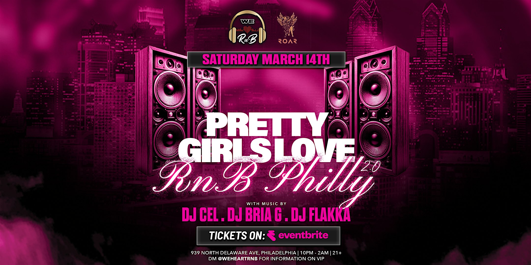 by admin13Feb Pretty Girls Love R&B 2.0 (Philly R&B Exclusive Event) at Roar Nightclub – Philadelphia, PA Pretty Girls Love R&B 2.0 (Philly R&B Exclusive Event) at Roar Nightclub – Philadelphia, PA 2 2 people viewed this event. There’s no night out better than R&B night. We Heart RnB is coming back to Philly @ Roar! All your favorite R&B songs from every era! Tickets-RSVP Link Date And Time Sunday, March 15th, 2026 02:00 AM (PST) Venue Roar Nightclub Location 939 North Delaware Avenue, Philadelphia, PA 19123 Event Types MusicParty or Social Gathering Event Category PennsylvaniaPhiladelphia Share With Friends Facebook Twitter Linkedin Xing Pinterest Share This Post: