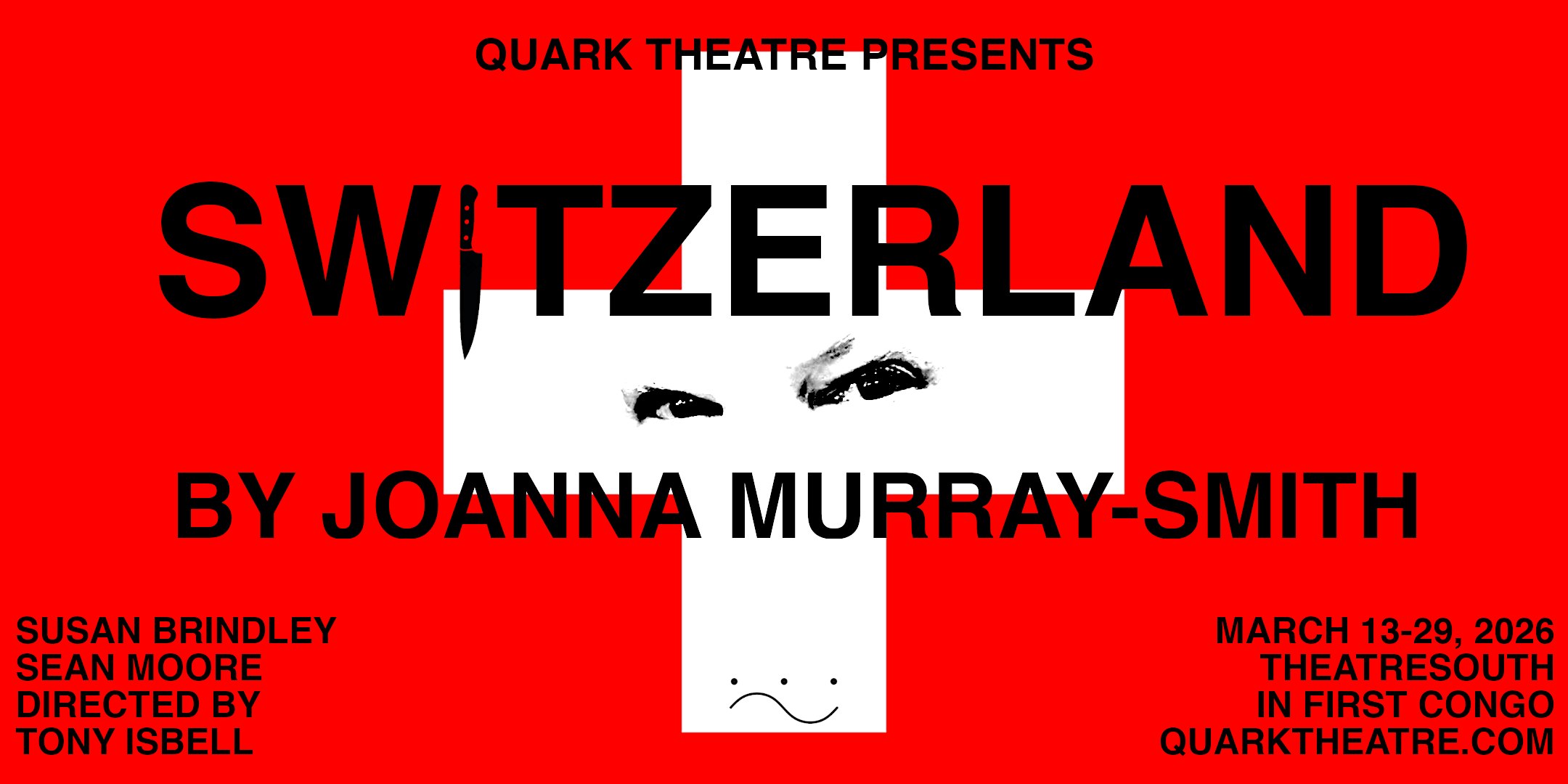 Quark presents SWITZERLAND at 1000 Cooper St – Memphis, TN Quark presents SWITZERLAND at 1000 Cooper St – Memphis, TN 1 1 people viewed this event. A dark, compelling contretemps between an aging crime novelist and a young literary agent. Tickets-RSVP Link Register for event Date And Time Sunday, March 15th, 2026 @ 02:00 PM Location 1000 Cooper Street, Memphis, TN 38104 Event Types Concert or PerformancePerforming & Visual Arts Event Category MemphisTennessee Share With Friends Facebook Twitter Linkedin Xing Pinterest