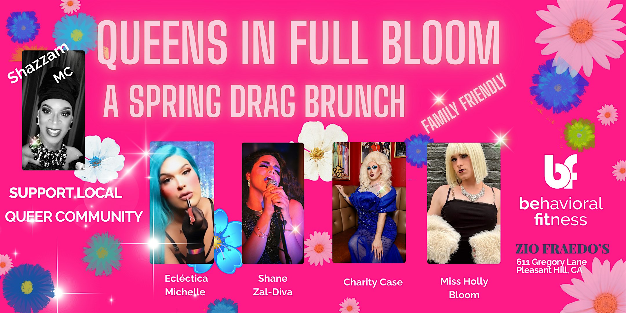 by admin13Feb Queens in Full Bloom a Spring Drag Brunch at Zio Fraedo’s – Pleasant Hill, CA Queens in Full Bloom a Spring Drag Brunch at Zio Fraedo’s – Pleasant Hill, CA 2 2 people viewed this event. Fabulous Drag Brunch , Flowers, Fun, Unforgettable- Blooming Queens! Flowers everywhere. Where your flowers and come celebrate with us! Tickets-RSVP Link Date And Time Sunday, March 15th, 2026 06:00 PM (PST) Venue Zio Fraedo’s Location 611 Gregory Lane, Pleasant Hill, CA 94523 Event Types Film, Media & EntertainmentParty or Social Gathering Event Category California Share With Friends Facebook Twitter Linkedin Xing Pinterest Share This Post: