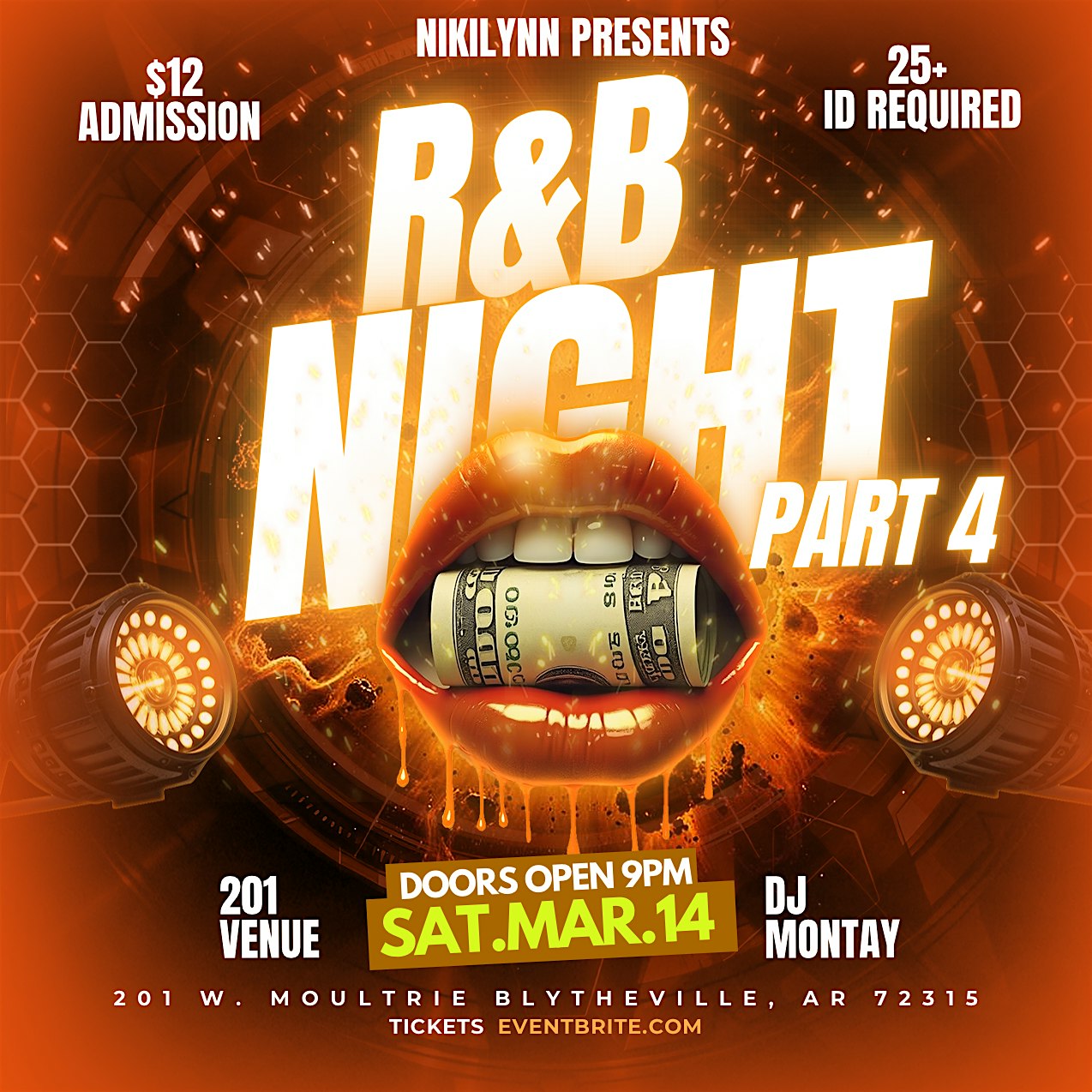 by admin13Feb RnB Night Part 4 at 201 W Moultrie Dr – Blytheville, AR RnB Night Part 4 at 201 W Moultrie Dr – Blytheville, AR 2 2 people viewed this event. Get ready to vibe all night with smooth beats and killer grooves at RnB Night Part 4! Tickets-RSVP Link Date And Time Sunday, March 15th, 2026 02:00 AM (PST) Venue 201 W Moultrie Dr Location 201 West Moultrie Drive, Blytheville, AR 72315 Event Types MusicParty or Social Gathering Event Category Arkansas Share With Friends Facebook Twitter Linkedin Xing Pinterest Share This Post:
