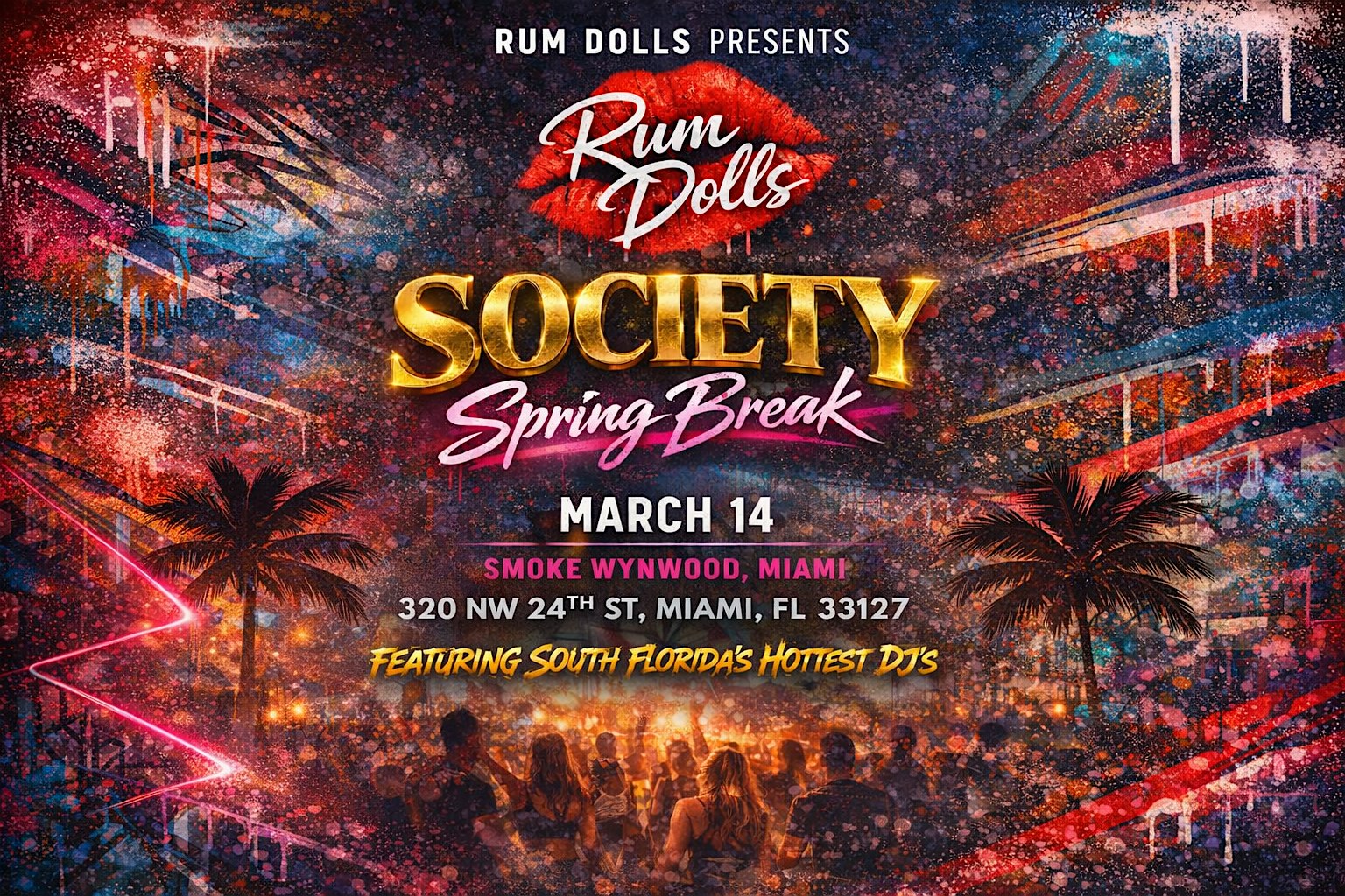 by admin12Feb Rum Dolls Presents: SOCIETY SPRING BREAK at Smoke Wynwood – Miami, FL Rum Dolls Presents: SOCIETY SPRING BREAK at Smoke Wynwood – Miami, FL 3 3 people viewed this event. Pretty Girls Party Different – and this Spring Break, we’re setting the standard. Join Rum Dolls for an elevated nightlife experience✨ Tickets-RSVP Link Date And Time Sunday, March 15th, 2026 12:00 AM (PST) Venue Smoke Wynwood Location 320 Northwest 24th Street, Miami, FL 33127 Event Types MusicParty or Social GatheringSpring Break Event Category FloridaMiami Share With Friends Facebook Twitter Linkedin Xing Pinterest Share This Post: