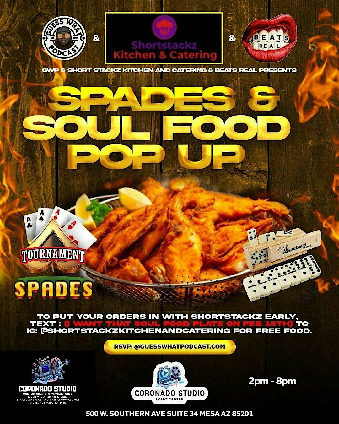 by admin05Mar Spades and Soul Food Pop Up at 500 W Southern Ave suite 34 – Mesa, AZ Spades and Soul Food Pop Up at 500 W Southern Ave suite 34 – Mesa, AZ 1 1 people viewed this event. Come vibe with us at Spades and Soul Food Pop Up for good cards, great eats, and cool company! Tickets-RSVP Link Date And Time Sunday, March 15th, 2026 02:00 PM (PST) Venue 500 W Southern Ave suite 34 Location 500 West Southern Avenue, Mesa, AZ 85210 Event Types Food & DrinkParty or Social Gathering Event Category Arizona Share With Friends Facebook Twitter Linkedin Xing Pinterest Share This Post:
