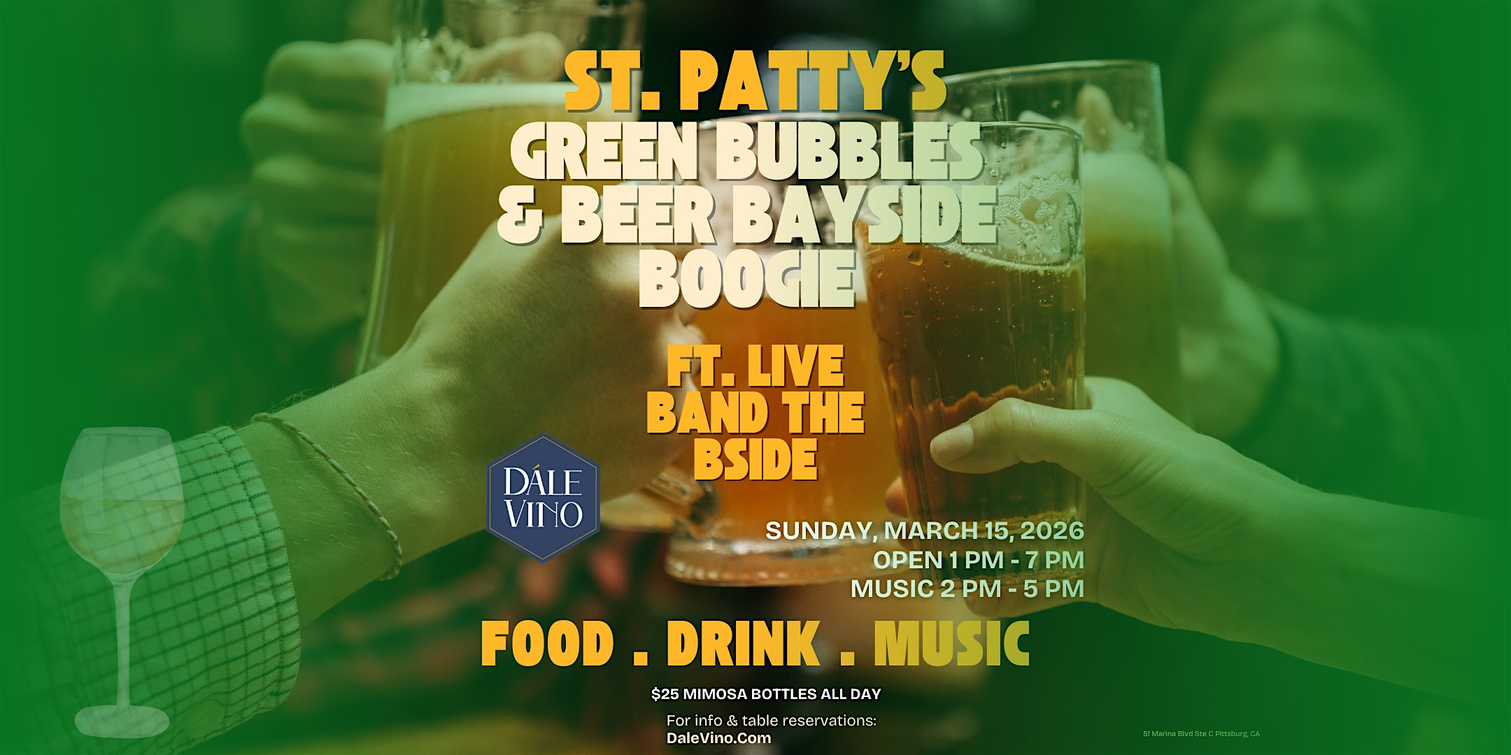 St. Patty’s Green Bubbles & Beer Bayside Boogie! Ft: Live band the B SIDE at Dále Vino, Marina Boulevard Suite C, Pittsburg, CA, USA – Pittsburg, CA