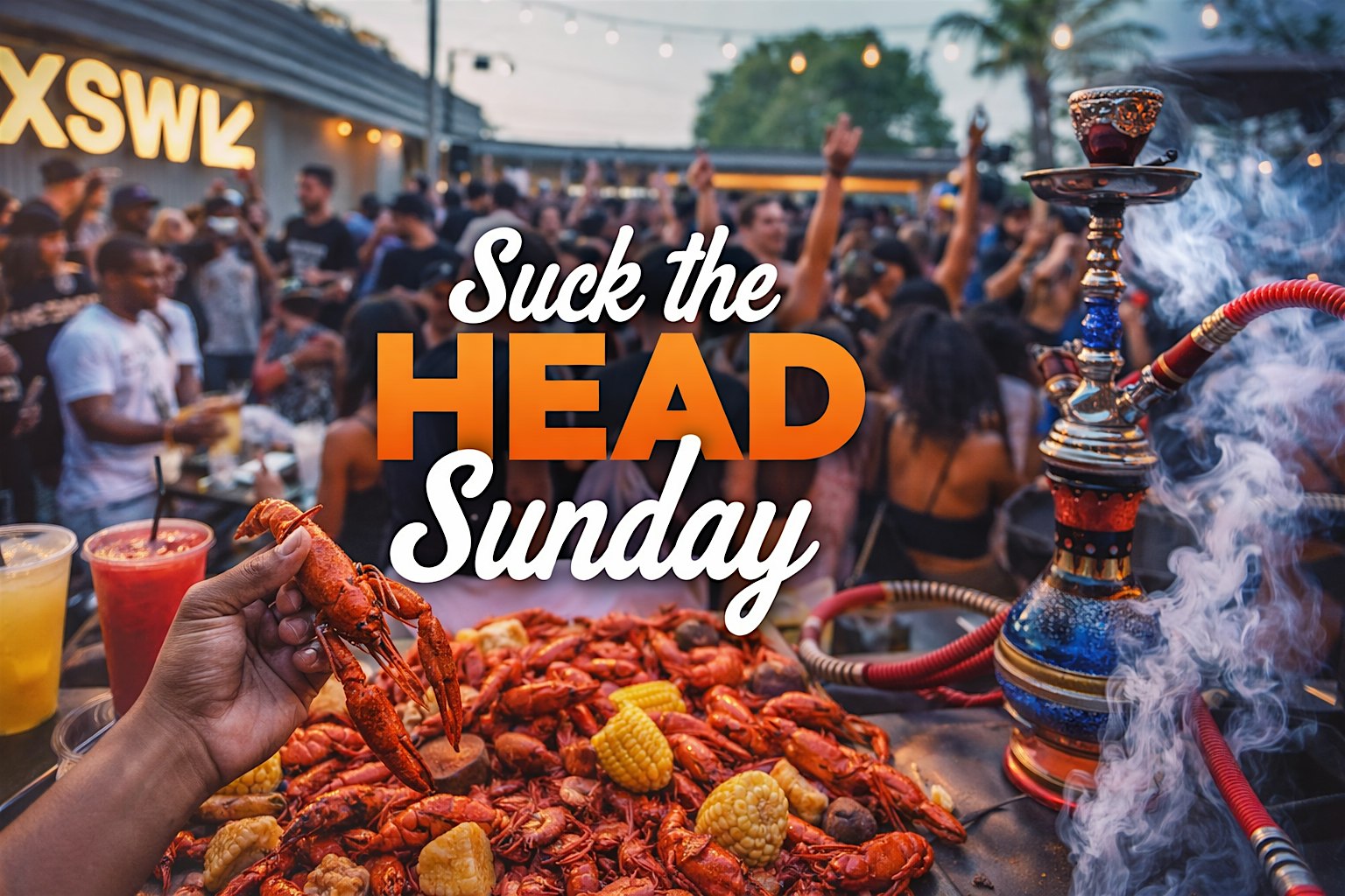 by admin05Mar Suck the Head Sunday | SXSW Crawfish Boil & Day Party at Victory East – Austin, TX Suck the Head Sunday | SXSW Crawfish Boil & Day Party at Victory East – Austin, TX 4 4 people viewed this event. SXSW Sunday crawfish boil with DJs, drinks, and patio vibes. Pull up, meet good people, and experience a real Austin Sunday. Tickets-RSVP Link Date And Time Sunday, March 15th, 2026 11:00 AM (PDT) Venue Victory East Location 1104 East 11th Street, Austin, TX 78702 Event Types Food & DrinkParty or Social Gathering Event Category AustinTexas Share With Friends Facebook Twitter Linkedin Xing Pinterest Share This Post: