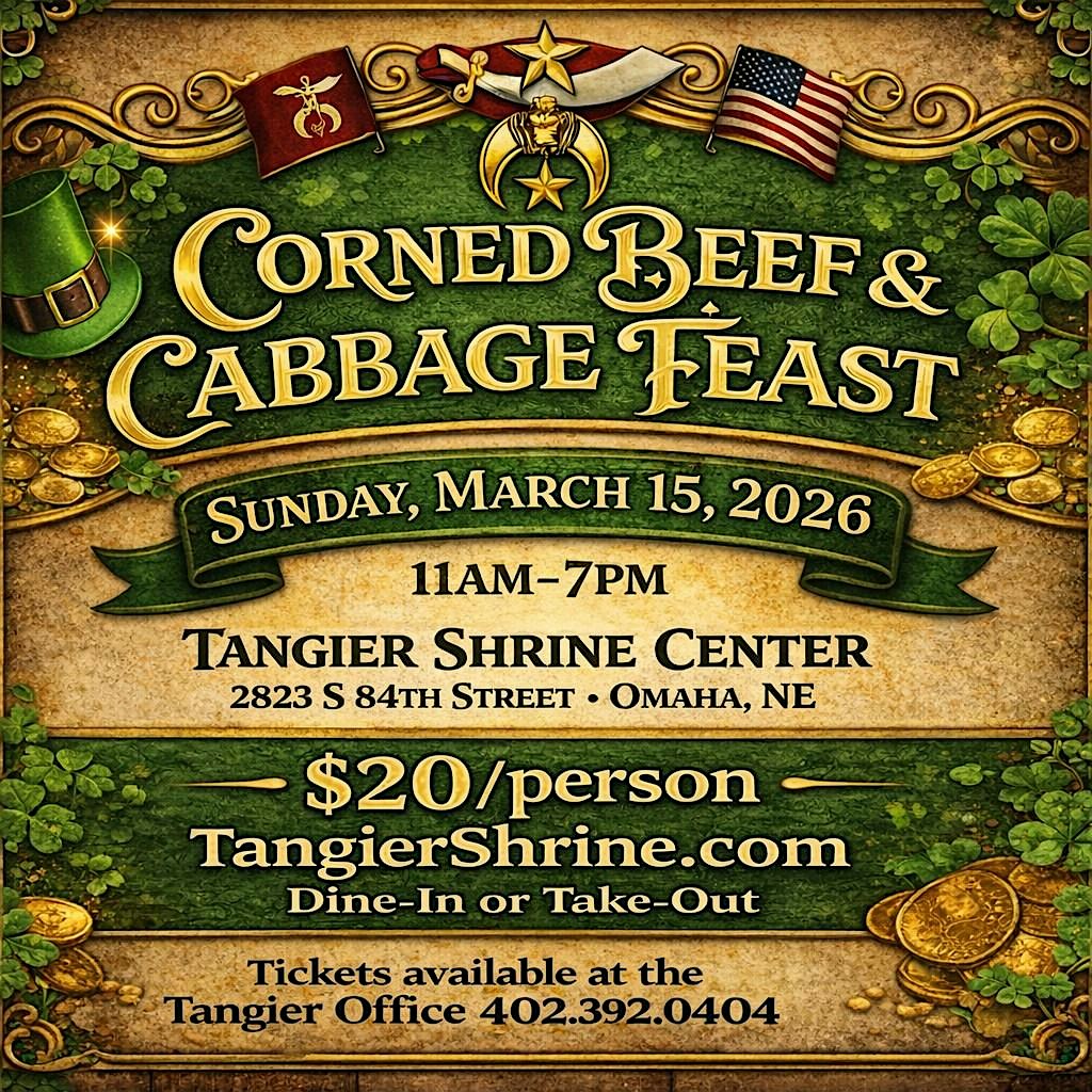 by admin05Mar Tangier Shriners Corned Beef & Cabbage Feast at 2823 S 84th St – Omaha, NE Tangier Shriners Corned Beef & Cabbage Feast at 2823 S 84th St – Omaha, NE 4 4 people viewed this event. Grab your shamrocks and follow the scent of savory goodness because the Tangier Shriners Annual Corned Beef & Cabbage Feast is back and brim Tickets-RSVP Link Date And Time Sunday, March 15th, 2026 11:00 AM (PST) Venue 2823 S 84th St Location 2823 South 84th Street, Omaha, NE 68124 Event Types Food & DrinkParty or Social Gathering Event Category NebraskaOmaha Share With Friends Facebook Twitter Linkedin Xing Pinterest Share This Post: