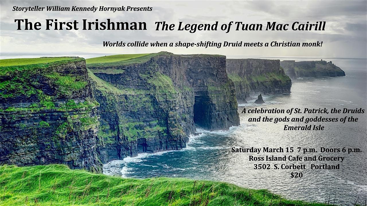 by admin05Mar The First Irishman – The Legend of Tuan Mac Cairill at Ross Island Grocery & Cafe – Portland, OR The First Irishman – The Legend of Tuan Mac Cairill at Ross Island Grocery & Cafe – Portland, OR 1 1 people viewed this event. A celebration of St. Patrick, the Druids and the gods and godesses of the Emerald Isle. Tickets-RSVP Link Date And Time Sunday, March 15th, 2026 07:00 PM (PST) Venue Ross Island Grocery & Cafe Location 3502 South Corbett Avenue, Portland, OR 97239 Event Types Concert or PerformancePerforming & Visual Arts Event Category OregonPortland Share With Friends Facebook Twitter Linkedin Xing Pinterest Share This Post: