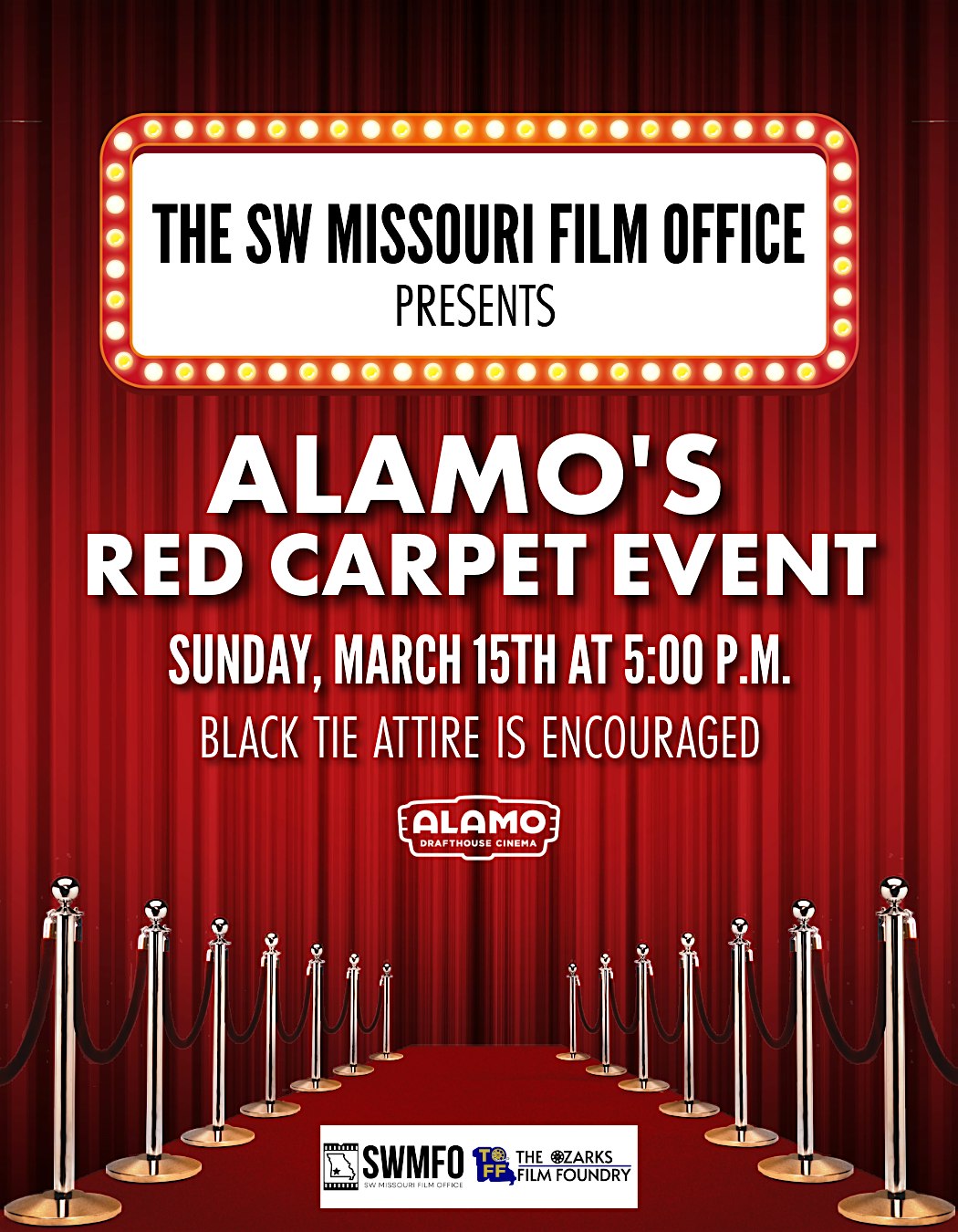 by admin27Feb The SWMO Film Office Presents the Alamo Red Carpet Event at The Backlot – Springfield, MO The SWMO Film Office Presents the Alamo Red Carpet Event at The Backlot – Springfield, MO 1 1 people viewed this event. Join us for a glamorous evening surrounding the celebration of film. Drinks, games, prizes, and more await. Black tie attire is encouraged. Tickets-RSVP Link Date And Time Sunday, March 15th, 2026 @ 05:00 PM Location 4005 South Avenue, Springfield, MO 65807 Event Types Film, Media & EntertainmentParty or Social Gathering Event Category Missouri Share With Friends Facebook Twitter Linkedin Xing Pinterest Share This Post: