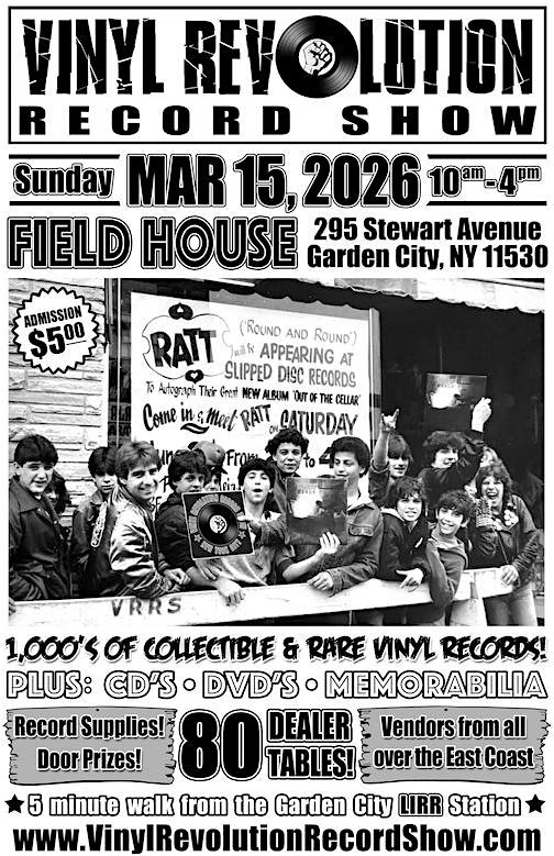 by admin13Feb Vinyl Revolution Record Show – Garden City at St. Paul’s Recreation Complex – Garden City, NY Vinyl Revolution Record Show – Garden City at St. Paul’s Recreation Complex – Garden City, NY 1 1 people viewed this event. Music lovers, mark your calendars—the Vinyl Revolution Record Show is back on Long Island for another unforgettable event! Tickets-RSVP Link Date And Time Sunday, March 15th, 2026 02:00 PM (PST) Venue St. Paul's Recreation Complex Location 295 Stewart Avenue, Garden City, NY 11530 Event Types Music Event Category New York Share With Friends Facebook Twitter Linkedin Xing Pinterest Share This Post: