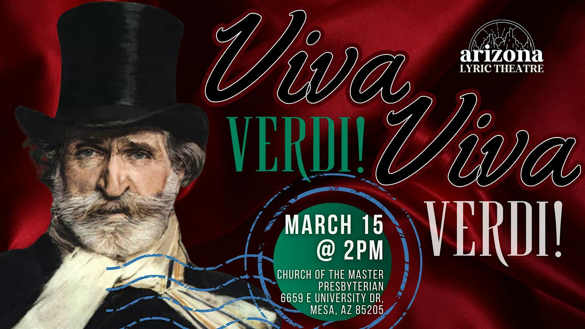 by admin05Mar Viva Verdi! Viva Verdi! ✨ at Church of the Master Presbyterian – Mesa, AZ Viva Verdi! Viva Verdi! ✨ at Church of the Master Presbyterian – Mesa, AZ 3 3 people viewed this event. Experience the drama and beauty of Verdi’s greatest hits in this thrilling operatic celebration! Tickets-RSVP Link Date And Time Sunday, March 15th, 2026 02:00 PM (PDT) Venue Church of the Master Presbyterian Location 6659 East University Drive, Mesa, AZ 85205 Event Types Concert or PerformancePerforming & Visual Arts Event Category Arizona Share With Friends Facebook Twitter Linkedin Xing Pinterest Share This Post: