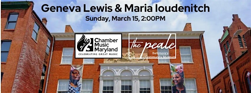 by admin14Feb When Two Violins Speak: Geneva Lewis & Maria Ioudenitch at 225 Holliday St – Baltimore, MD When Two Violins Speak: Geneva Lewis & Maria Ioudenitch at 225 Holliday St – Baltimore, MD 2 2 people viewed this event. Chamber Music Maryland returns to The Peale with Geneva Lewis & Maria Ioudenitch presenting When Two Violins Speak. Tickets-RSVP Link Date And Time Sunday, March 15th, 2026 06:00 PM (PST) Venue 225 Holliday St Location 225 Holliday Street, Baltimore, MD 21202 Event Types Concert or PerformancePerforming & Visual Arts Event Category BaltimoreMaryland Share With Friends Facebook Twitter Linkedin Xing Pinterest Share This Post: