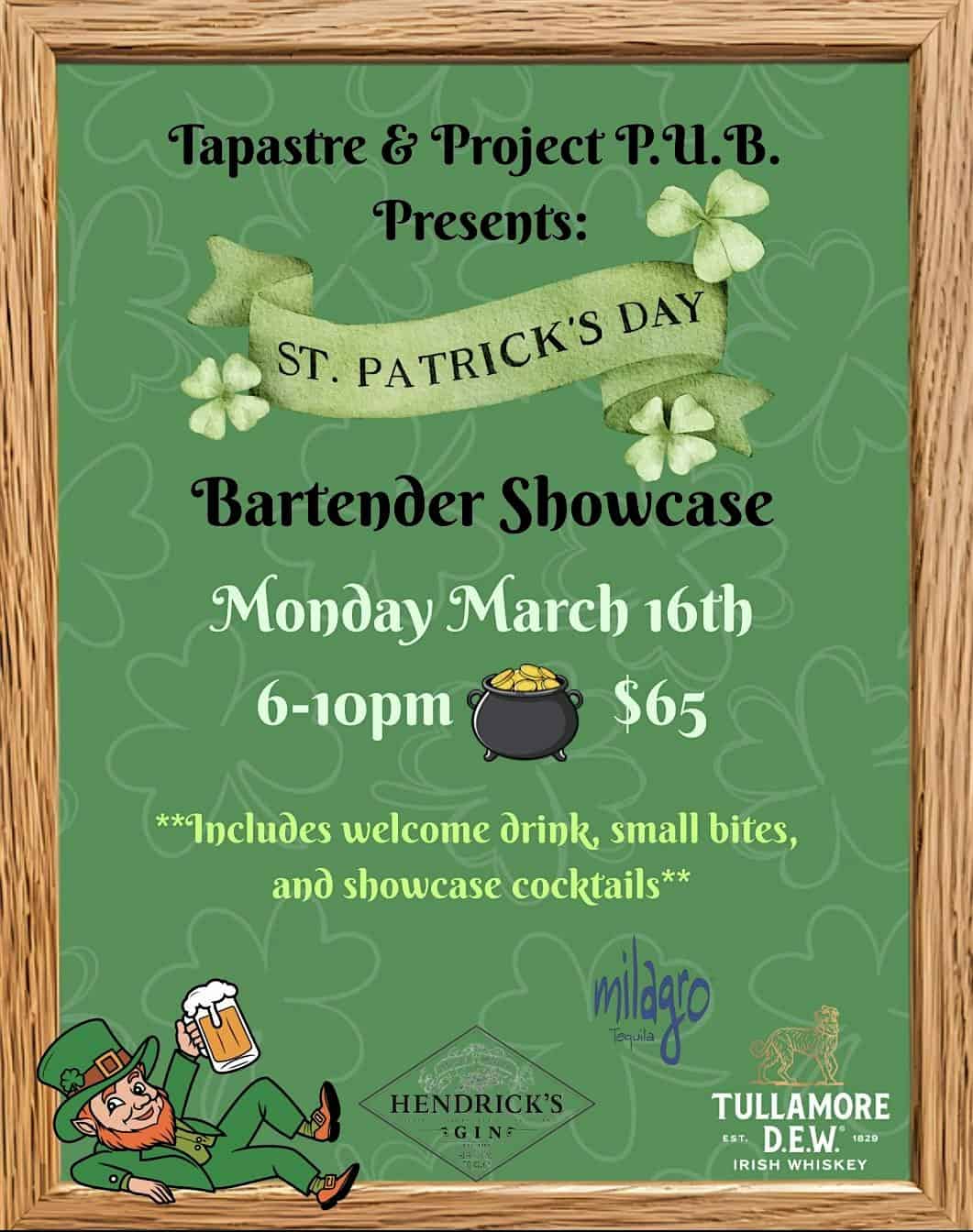by admin23Feb St. Patrick’s Bartender Showcase at Project P.U.B. – Somerville, NJ St. Patrick’s Bartender Showcase at Project P.U.B. – Somerville, NJ 2 2 people viewed this event. Join us on Monday, March 16th from 6-10pm for our 5th iteration of our bartender showcase! Drinks & small bites included in ticket price! Tickets-RSVP Link Date And Time Monday, March 16th, 2026 06:00 PM (PST) Venue Project P.U.B. Location 41 North Bridge Street, Somerville, NJ 8876 Event Types Food & DrinkParty or Social Gathering Event Category New Jersey Share With Friends Facebook Twitter Linkedin Xing Pinterest Share This Post: