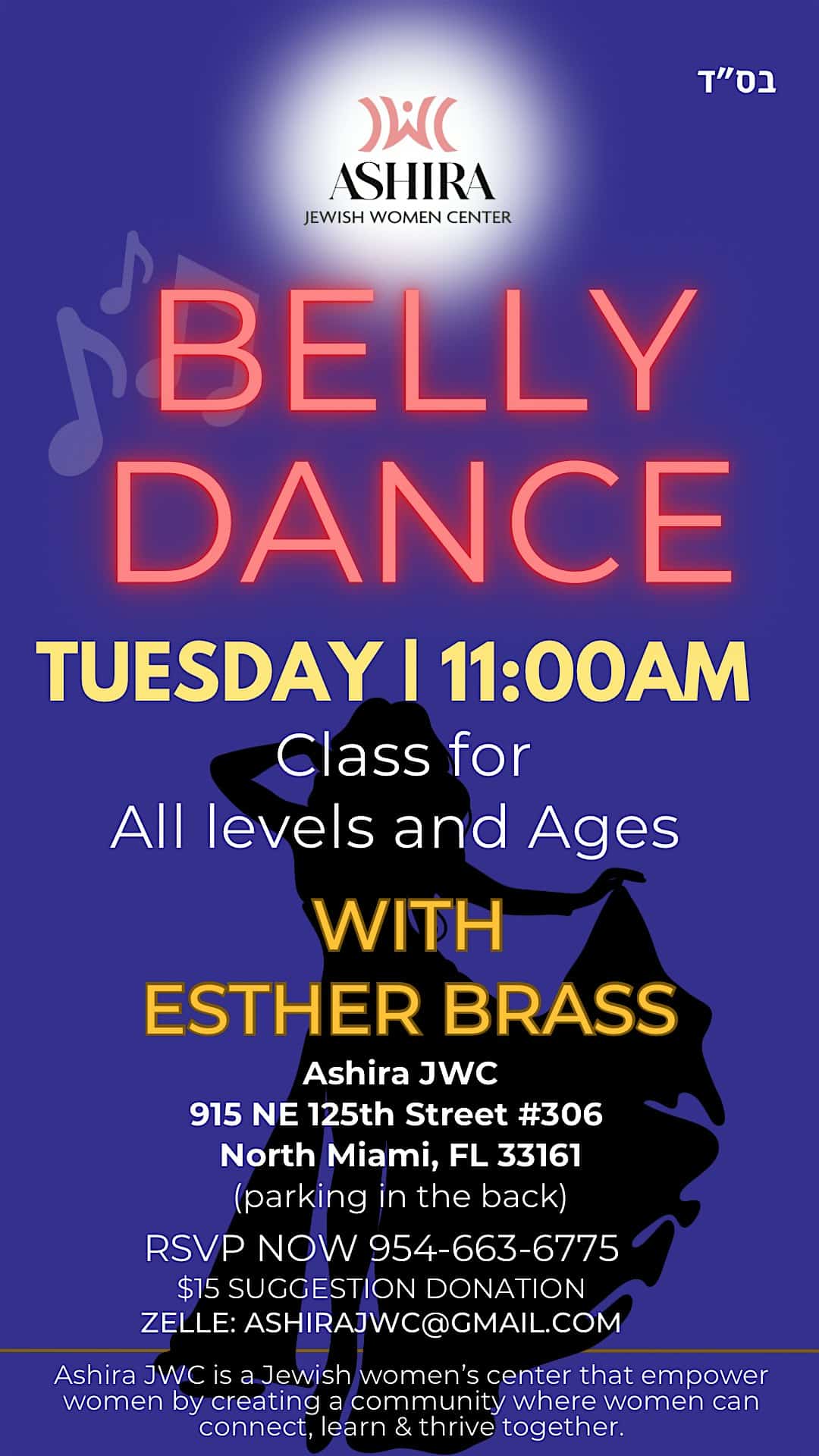 by admin14Feb Belly dance at AShira Jewish Women Center – North Miami, FL Belly dance at AShira Jewish Women Center – North Miami, FL 3 3 people viewed this event. Every Tuesday – Belly Dance for the soul, body & mind. A joyful, empowering class to move, release, and reconnect with yourself. All levels Tickets-RSVP Link Date And Time Tuesday, March 17th, 2026 03:00 PM (PST) Venue AShira Jewish Women Center Location 915 Northeast 125th Street, North Miami, FL 33161 Event Types Concert or PerformancePerforming & Visual Arts Event Category FloridaMiami Share With Friends Facebook Twitter Linkedin Xing Pinterest Share This Post: