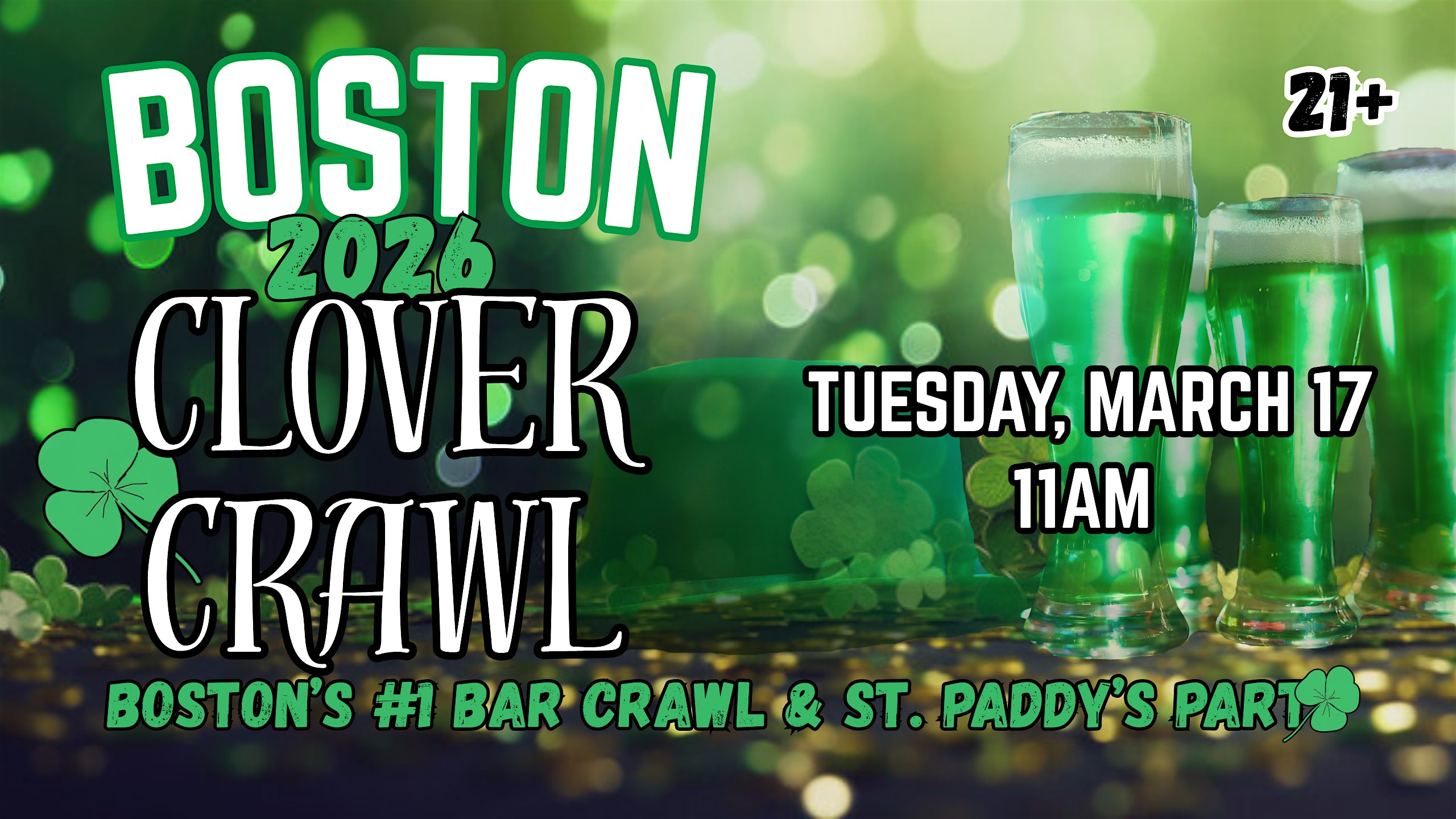 by admin23Feb Boston St. Patrick’s Day Bar Crawl at Wild Rover – Boston, MA Boston St. Patrick’s Day Bar Crawl at Wild Rover – Boston, MA 1 1 people viewed this event. Join us on Tuesday March 17th to celebrate St. Paddy’s Day – crawling thru some of Boston’s favorite bars by Faneuil Hall Tickets-RSVP Link Date And Time Tuesday, March 17th, 2026 11:00 AM (PST) Venue Wild Rover Location 61-63 Chatham Street, Boston, MA 2109 Event Types Party or Social GatheringSeasonal & Holiday Event Category BostonMassachusetts Share With Friends Facebook Twitter Linkedin Xing Pinterest Share This Post: