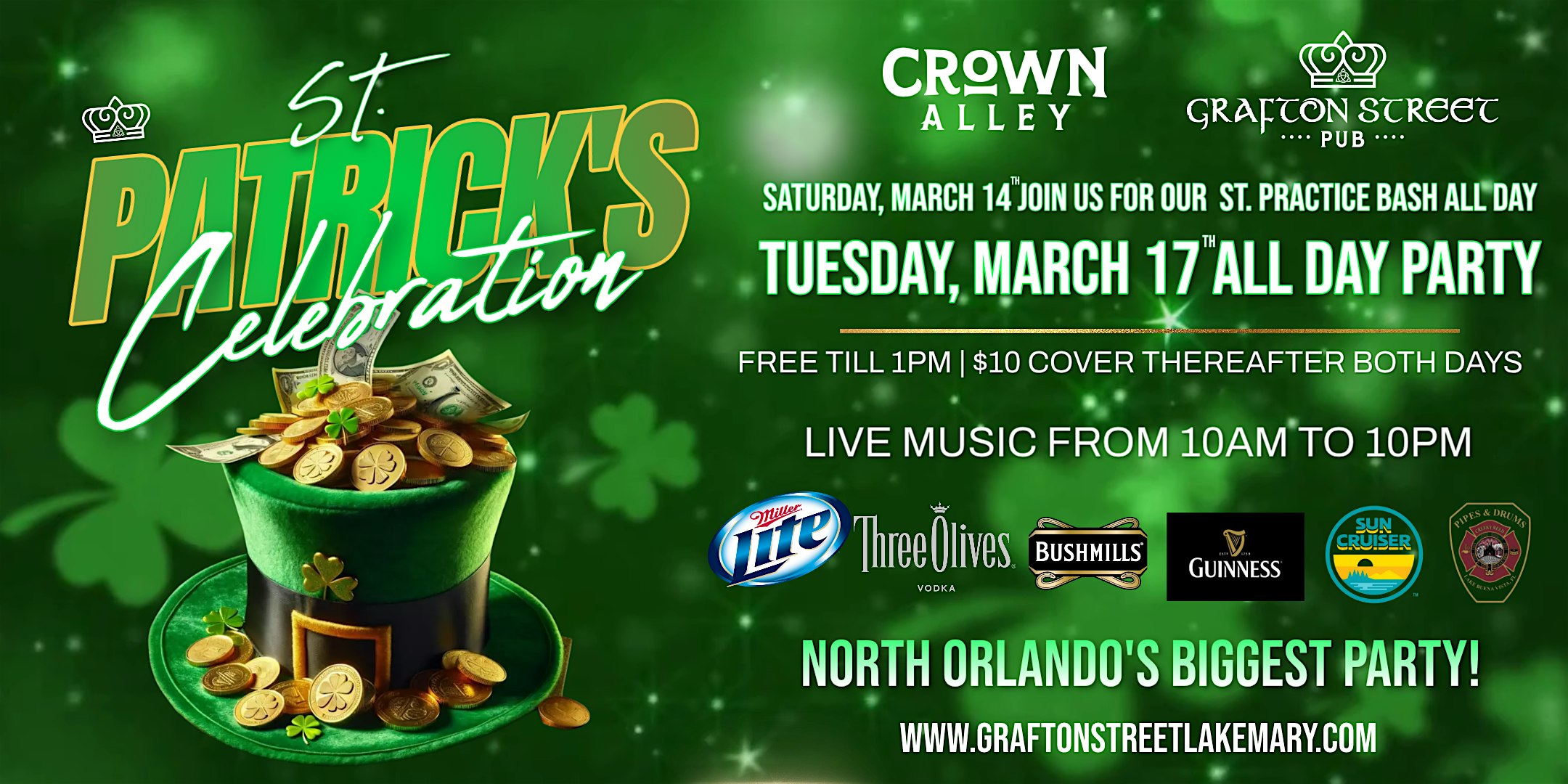 by admin24Feb Grafton Street St. Patrick’s Day Celebration at Grafton Street – Lake Mary, FL Grafton Street St. Patrick’s Day Celebration at Grafton Street – Lake Mary, FL 2 2 people viewed this event. Live Music, Food, Drinks and a Big Party to Celebrate! Tickets-RSVP Link Date And Time Tuesday, March 17th, 2026 10:00 AM (PST) Venue Grafton Street Location 7055 County Road 46A, Lake Mary, FL 32746 Event Types Party or Social GatheringSeasonal & Holiday Event Category Florida Share With Friends Facebook Twitter Linkedin Xing Pinterest Share This Post: