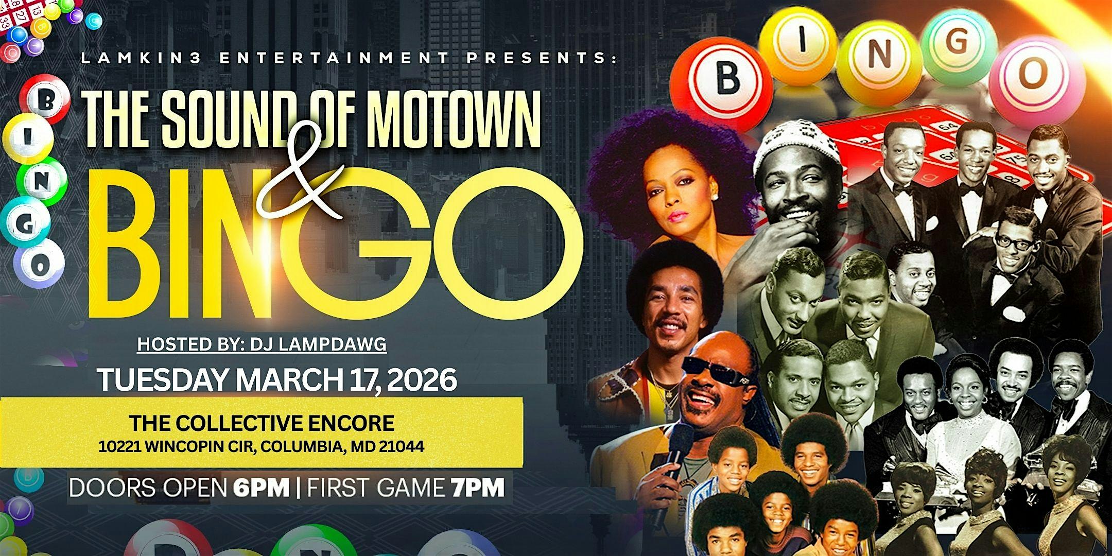by admin13Feb Lamkin3 Entertainment Presents…The Sound of Motown Music Bingo Night at The Collective – Encore – Columbia, MD Lamkin3 Entertainment Presents…The Sound of Motown Music Bingo Night at The Collective – Encore – Columbia, MD 1 1 people viewed this event. Experience Bingo Night like never before—packed with Motown hits & big voices, great prizes, and all the hype from DJ Lampdawg! Tickets-RSVP Link Date And Time Tuesday, March 17th, 2026 10:00 PM (PST) Venue The Collective - Encore Location 10221 Wincopin Circle, Columbia, MD 21044 Event Types Concert or PerformanceMusic Event Category BaltimoreMaryland Share With Friends Facebook Twitter Linkedin Xing Pinterest Share This Post: