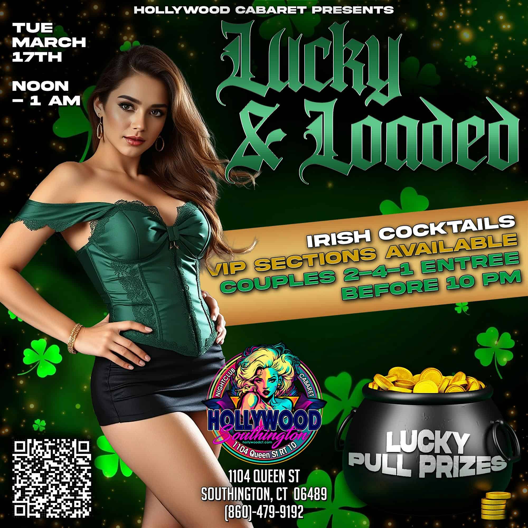 by admin23Feb Lucky & Loaded at Hollywood Cabaret – Southington, CT Lucky & Loaded at Hollywood Cabaret – Southington, CT 1 1 people viewed this event. The Pot of Gold never looked this good. Join us inside Hollywood for a luxurious St. Patrick’s experience filled with energy and luck. Tickets-RSVP Link Date And Time Tuesday, March 17th, 2026 09:00 PM (PST) Venue Hollywood Cabaret Location 1104 Queen Street, Southington, CT 6489 Event Types Food & DrinkParty or Social Gathering Event Category ConnecticutHartford Share With Friends Facebook Twitter Linkedin Xing Pinterest Share This Post: