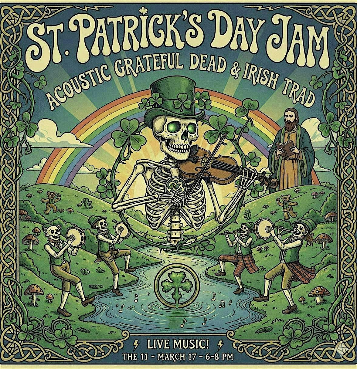 by admin13Feb St. Patrick’s Day Jam with John Hill at The Eleven – Albany, NY St. Patrick’s Day Jam with John Hill at The Eleven – Albany, NY 1 1 people viewed this event. Join us for a St Patricks Day Jam with John Hill featuring acoustic Grateful Dead & Irish Trad . 6pm / FREE Tickets-RSVP Link Date And Time Tuesday, March 17th, 2026 10:00 PM (PST) Venue The Eleven Location 262 Lark Street, Albany, NY 12210 Event Types Concert or PerformanceMusic Event Category New York Share With Friends Facebook Twitter Linkedin Xing Pinterest Share This Post: