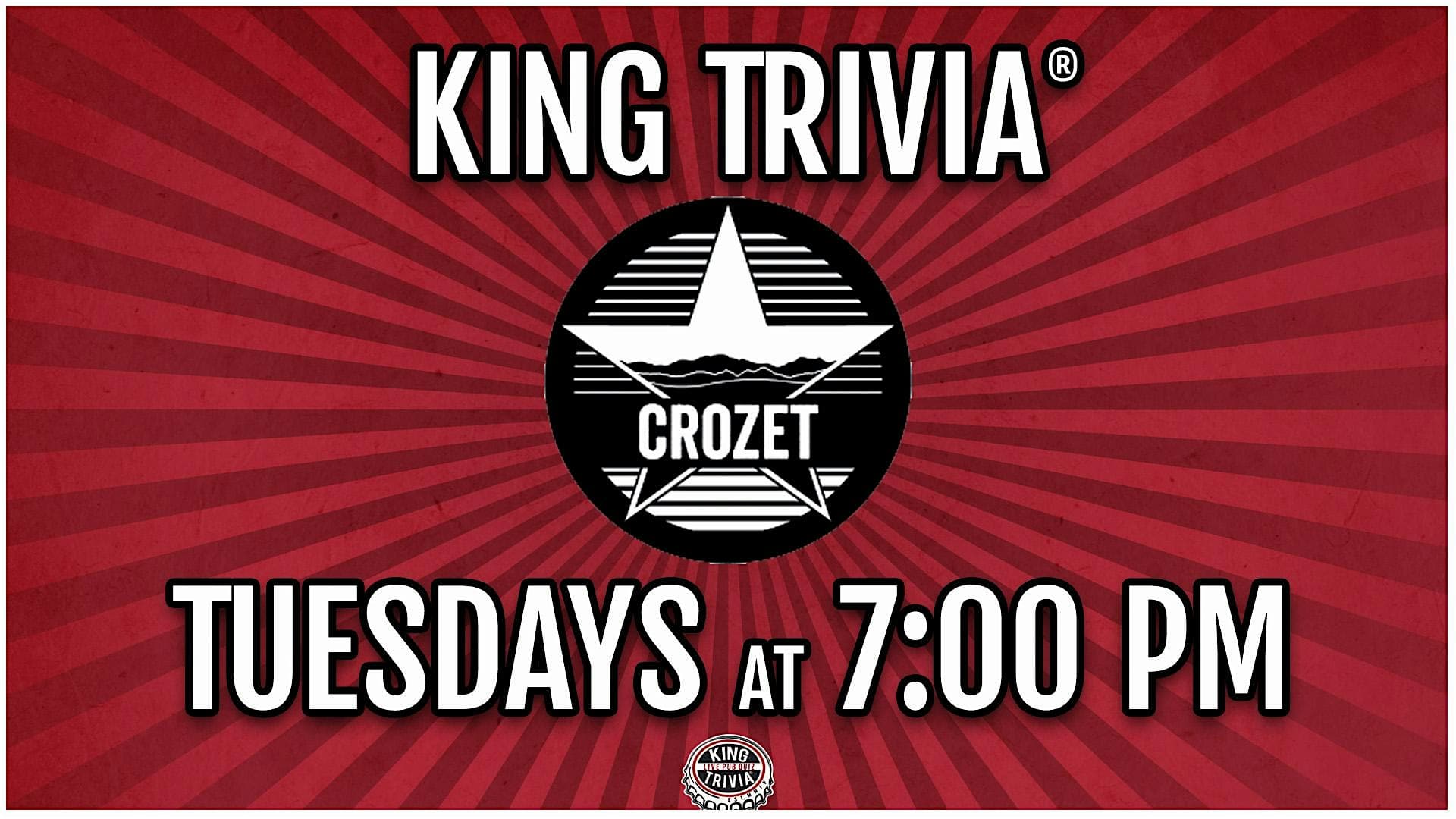 Trivia Night at Starr Hill Brewery at Starr Hill Brewery – Crozet, VA Trivia Night at Starr Hill Brewery at Starr Hill Brewery – Crozet, VA 1 1 people viewed this event. Your Weekly Bar Trivia Challenge! Drink a beer, munch some food, and compete for glory & prizes! FREE to play! Tickets-RSVP Link Register for event Date And Time Tuesday, March 17th, 2026 @ 07:00 PM Location 5391 Three Notch'd Road, Crozet, VA 22932 Event Types Food & DrinkGame or Competition Event Category Virginia Share With Friends Facebook Twitter Linkedin Xing Pinterest