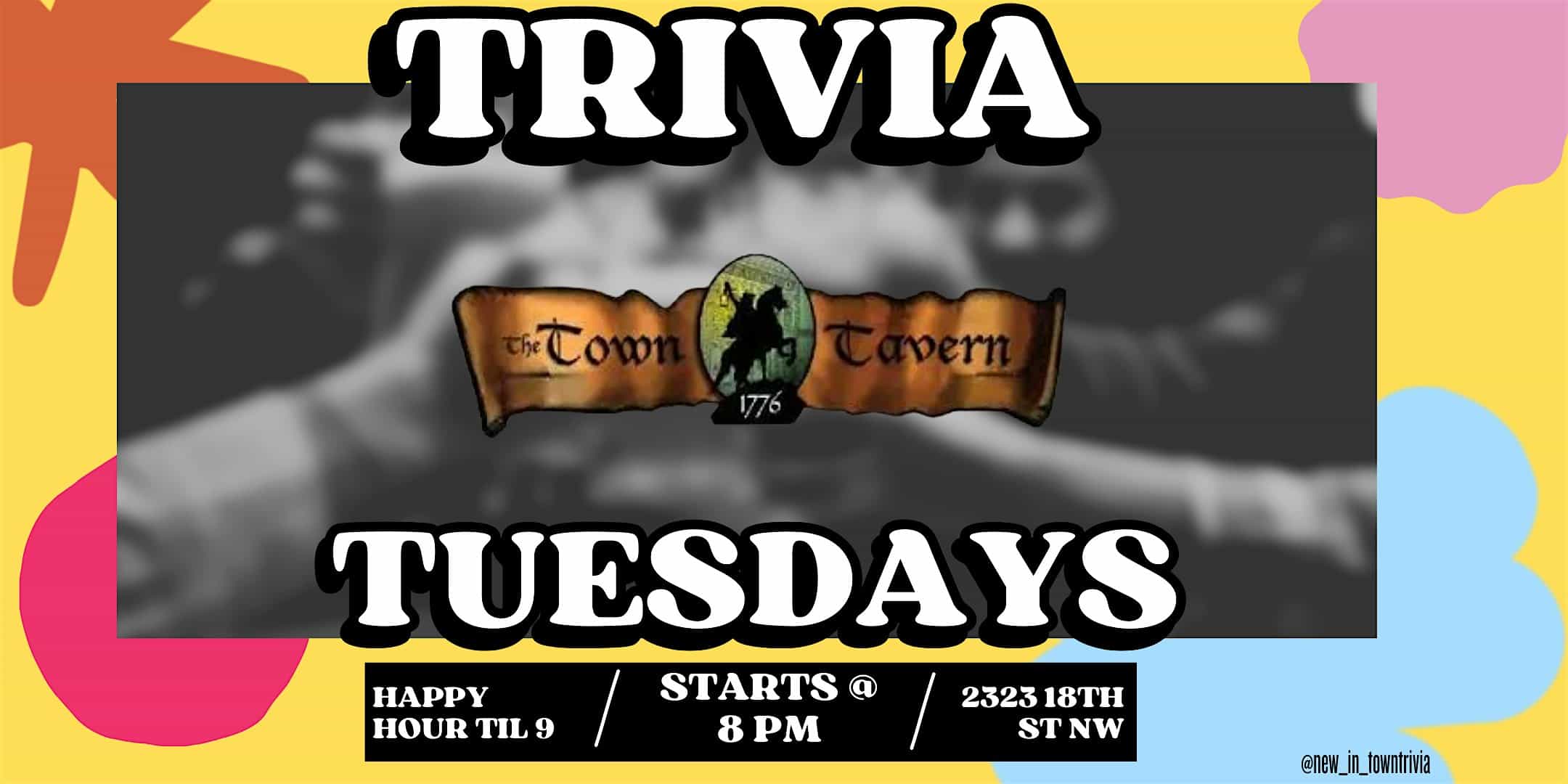 Trivia Tuesdays @ Town Tavern at Town Tavern DC – Washington, DC Trivia Tuesdays @ Town Tavern at Town Tavern DC – Washington, DC 1 1 people viewed this event. Come join us for Trivia Tuesdays at Town Tavern! Happy hour till 9 with great food all night. Winning teams get a prize! Tickets-RSVP Link Register for event Date And Time Tuesday, March 17th, 2026 @ 08:00 PM Location 2323 18th Street Northwest, Washington, DC 20009 Event Types Food & DrinkGame or Competition Event Category Washington DC Share With Friends Facebook Twitter Linkedin Xing Pinterest