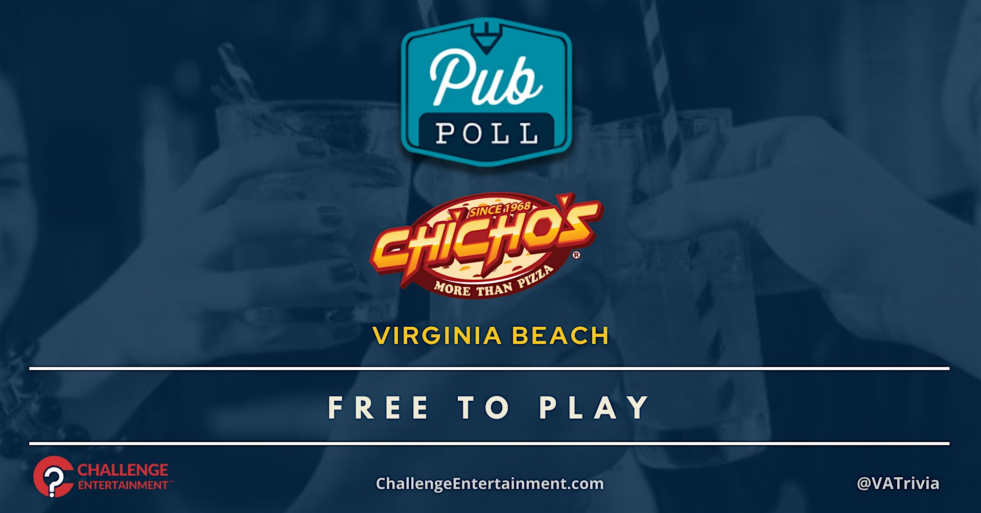 Weekly Pub Poll Nights at Chicho’s Pizza – 29th Street at 2820 Pacific Ave – Virginia Beach, VA Weekly Pub Poll Nights at Chicho’s Pizza – 29th Street at 2820 Pacific Ave – Virginia Beach, VA 4 4 people viewed this event. Chicho’s – 29th Street – Virginia Beach – Pub Poll – Tuesday – 7:00 PM Tickets-RSVP Link Register for event Date And Time Tuesday, March 17th, 2026 @ 07:00 PM Location 2820 Pacific Avenue, Virginia Beach, VA 23451 Event Types Food & DrinkGame or Competition Event Category VirginiaVirginia Beach Share With Friends Facebook Twitter Linkedin Xing Pinterest